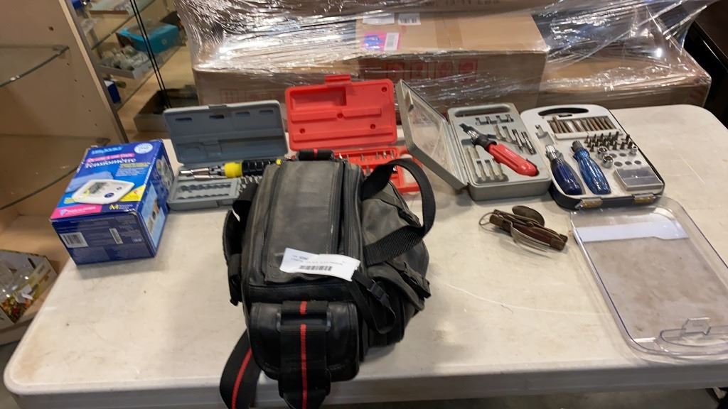 4 PARTIAL TOOL SETS, BLOOD PRESSURE MONITOR AND PANASONIC HANDYCAM