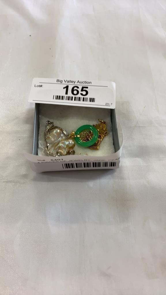 4 PIECES OF JEWELRY, JADE, PEARL, ETC