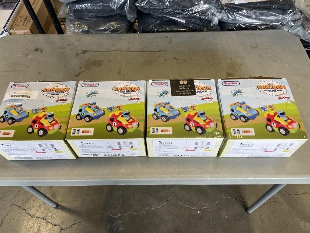 4 PREXTEX CARTOON POLICE AND RACE CAR SETS