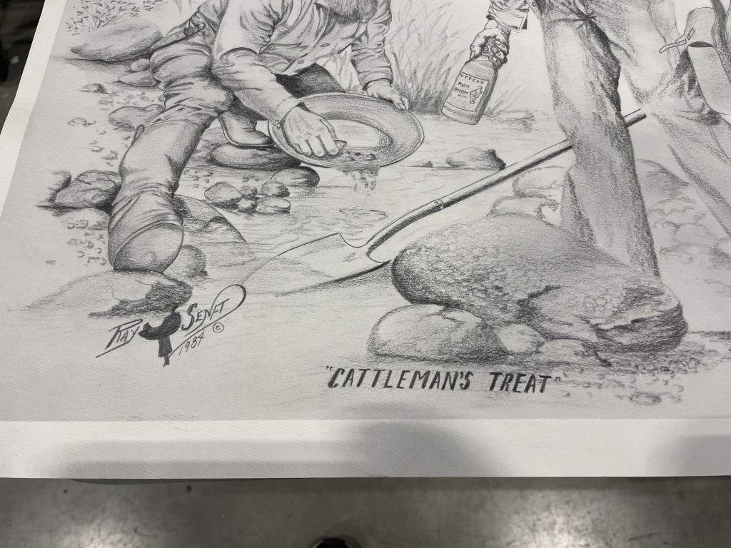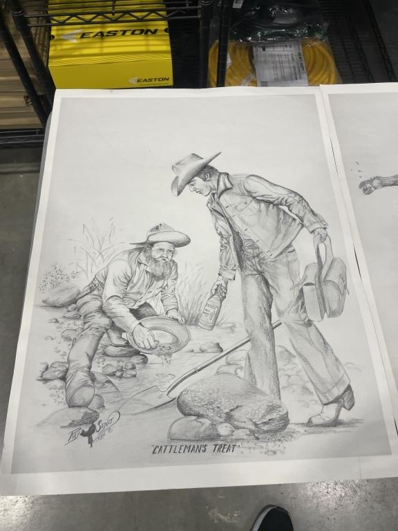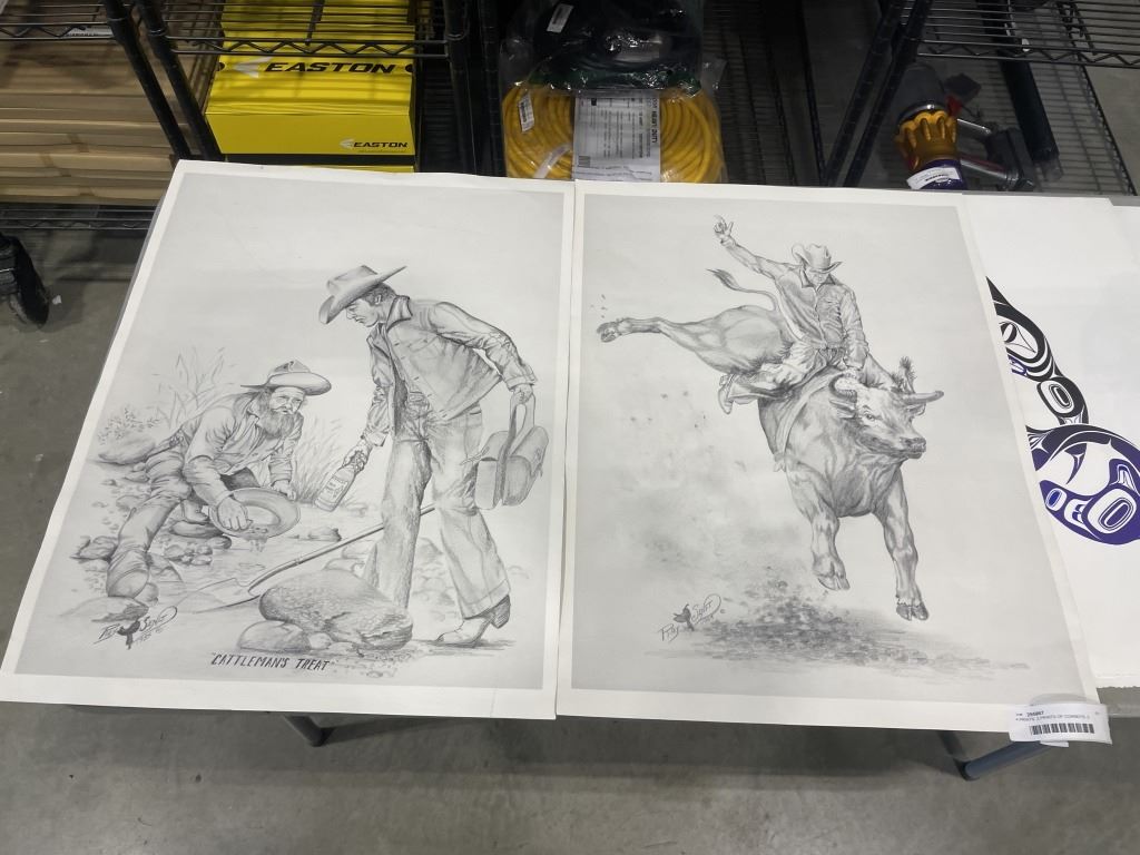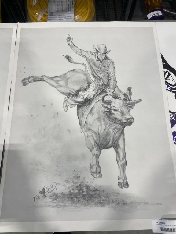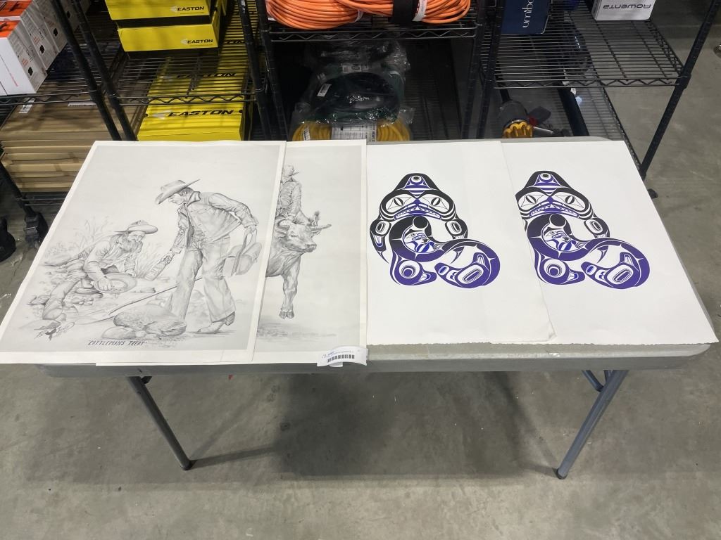 4 PRINTS. 2 PRINTS OF COWBOYS, 2 PRINTS OF NATIVE AMERICAN ART