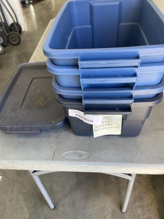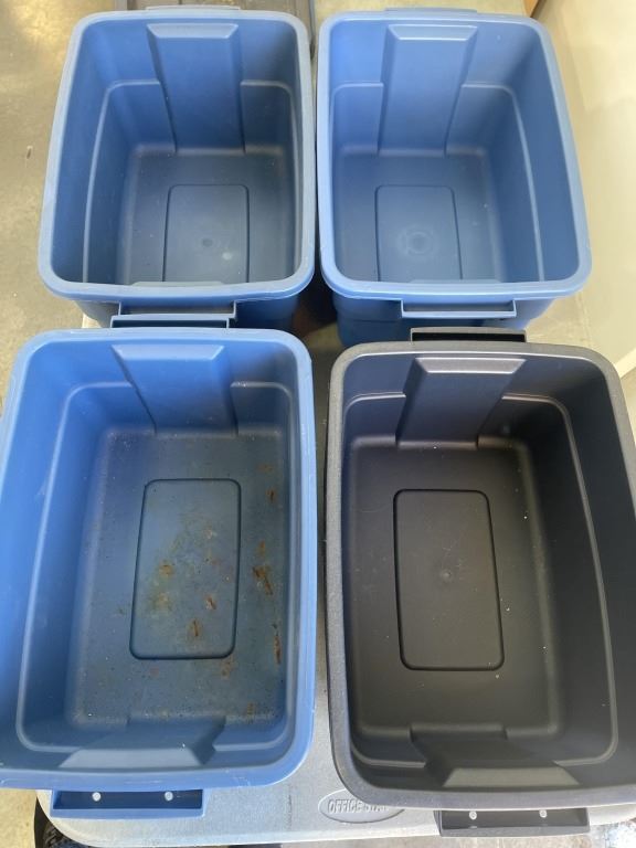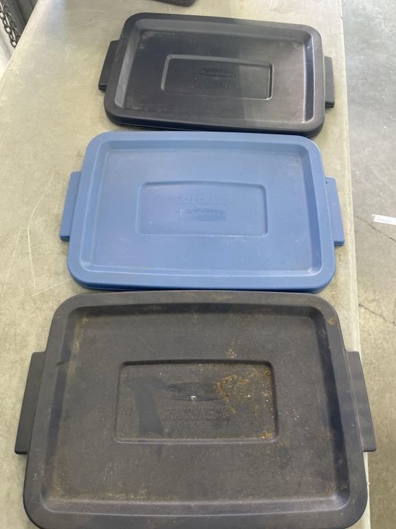 4 RUBBERMAID TOTES WITH 3 LIDS