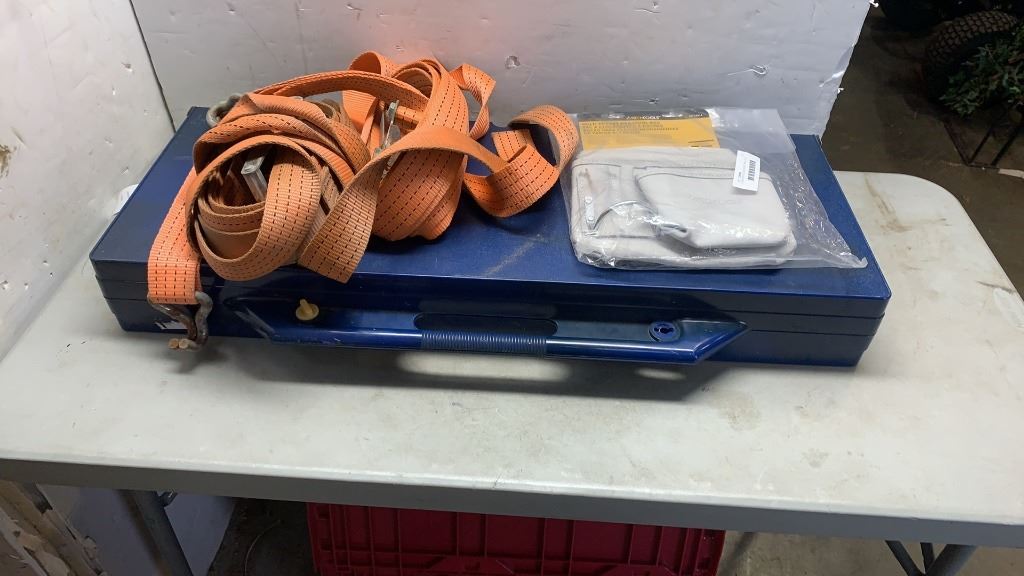 4 SEATER FOLDING PICNIC TABLE, 2 TIE DOWN STRAPS AND TOOLPOUCH