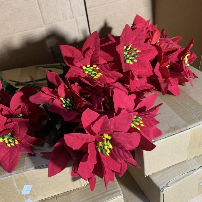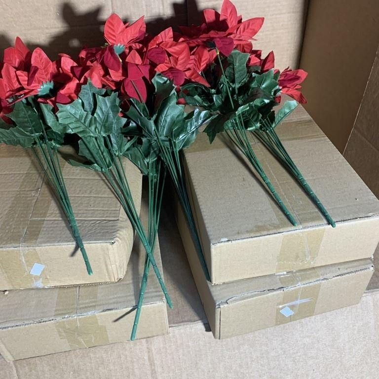 4 SETS OF 6 NEW POINTSETTIA ARTICIAL FLOWER BOUQUETS