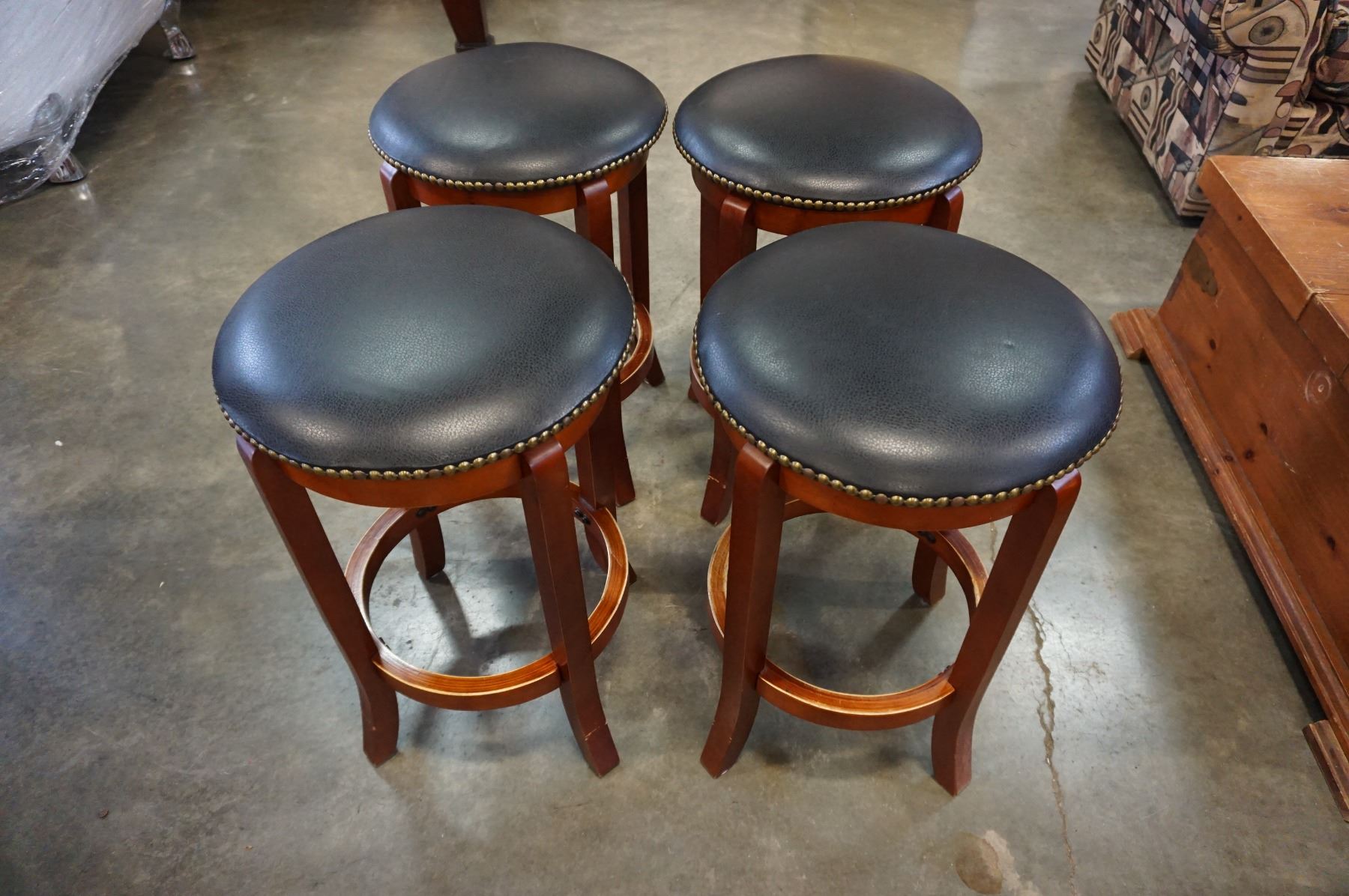 4 STUDDED LEATHER SWIVEL BAR STOOLS