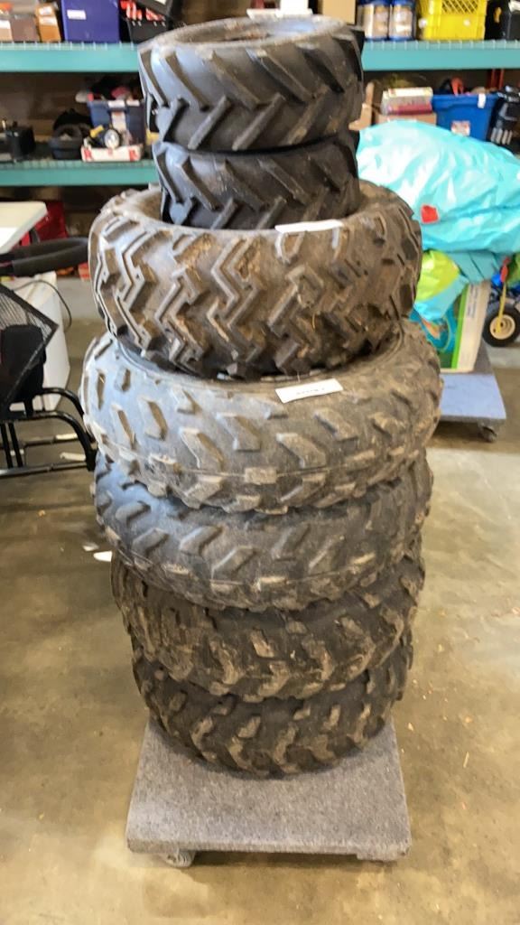 4 SUZUKI QUAD TIRES WITH 3 LAWN TRACTOR TIRES