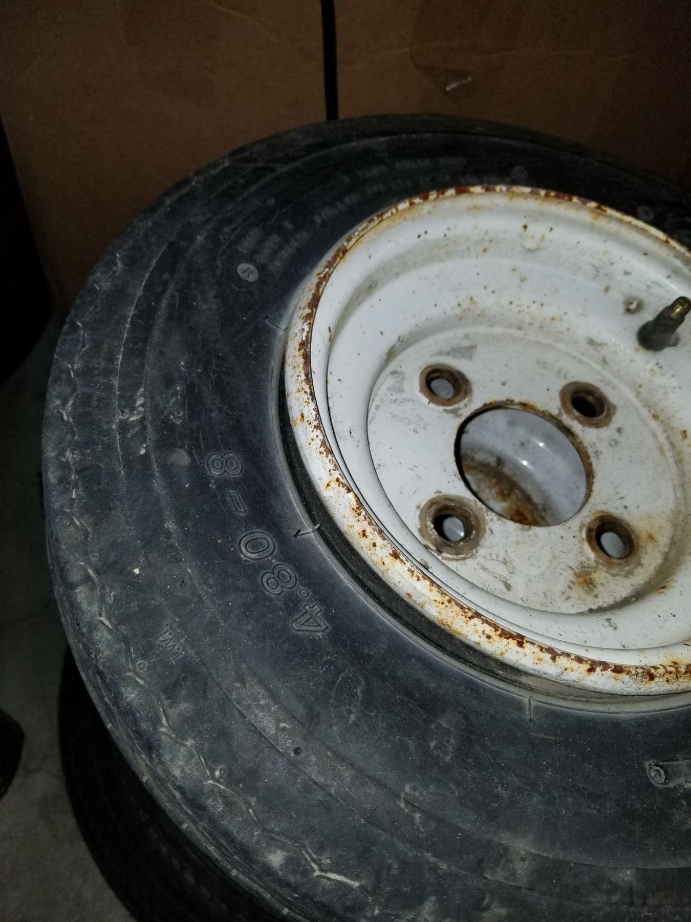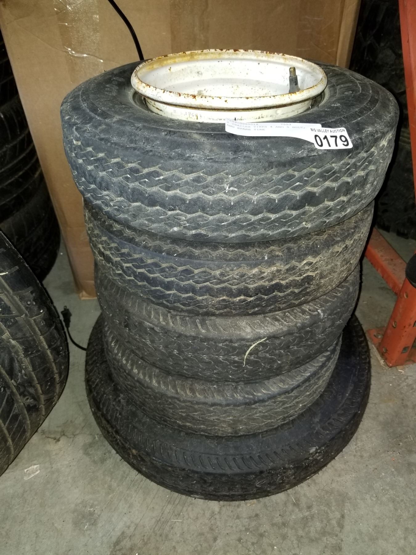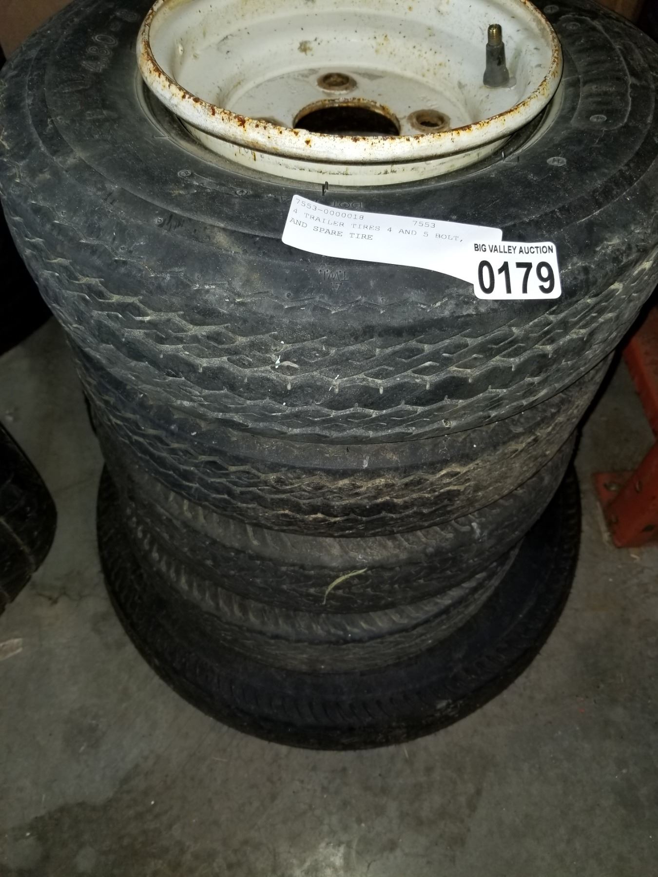 4 TRAILER TIRES 4 AND 5 BOLT, AND SPARE TIRE
