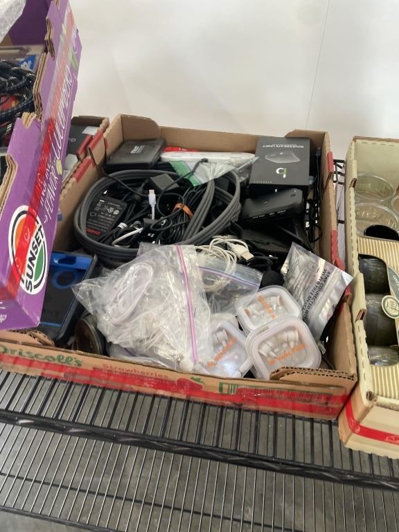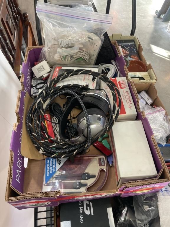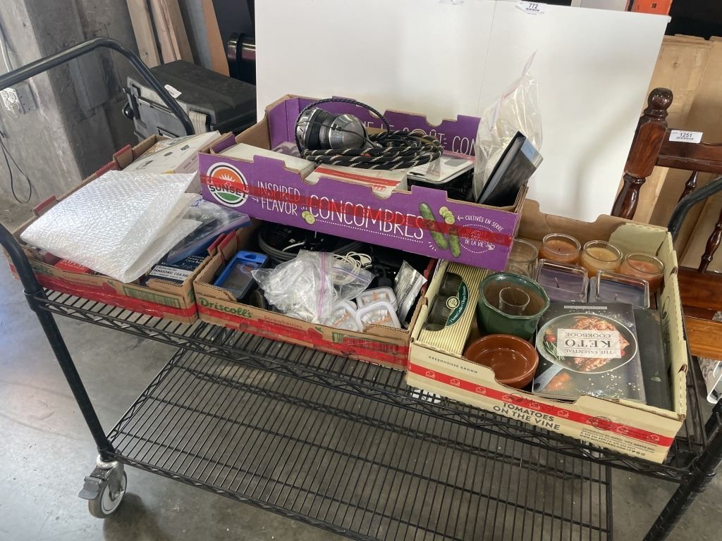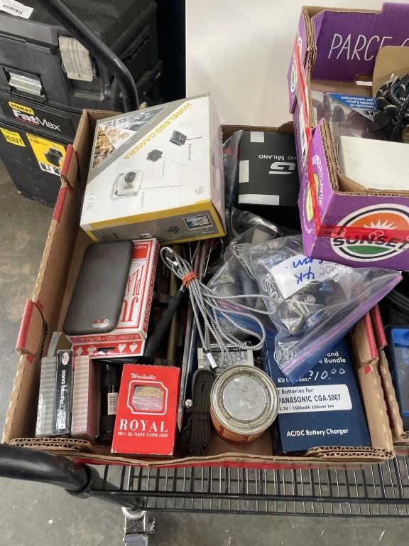 4 TRAYS OF ASSORTED MISC HOUSEHOLD AND ELECTRONICS