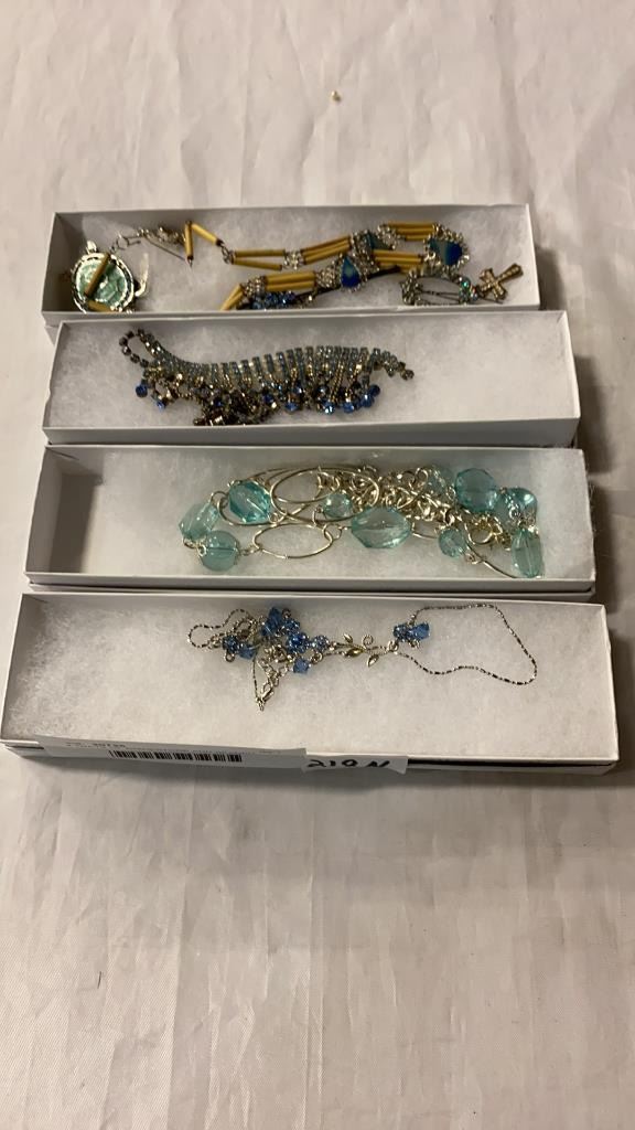 4 TRAYS OF RHINESTONE AND BEADED JEWELLERY