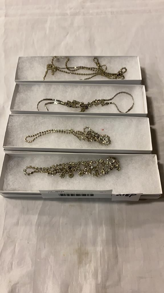4 TRAYS OF VARIOUS RHINESTONE JEWELLERY
