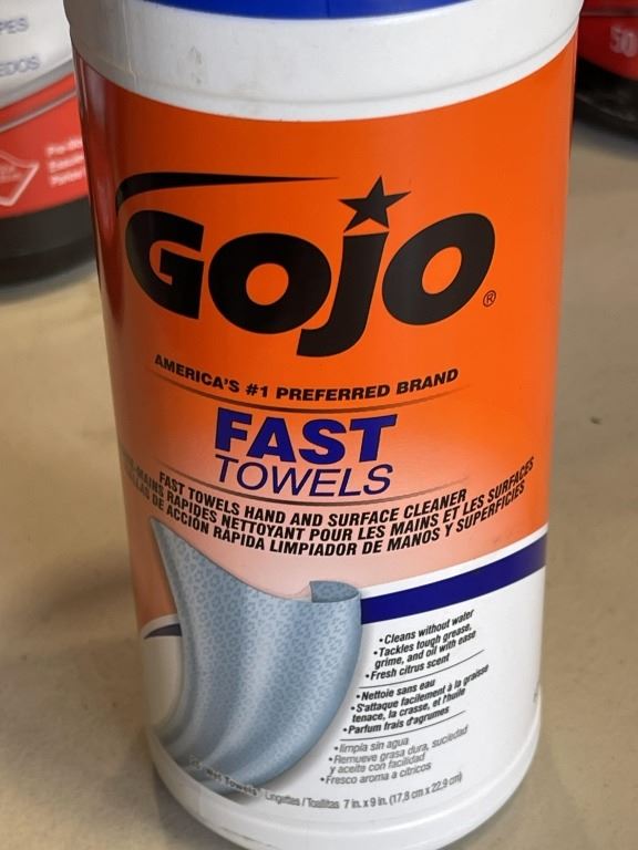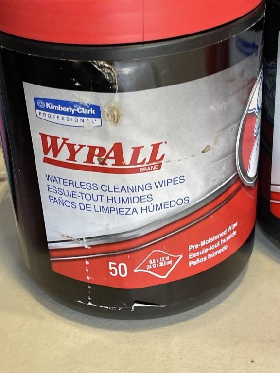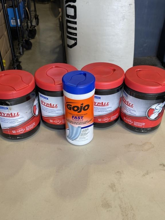 4 TUBS OF NEW WATERLESS WYPALL WIPES AND GOJO WIPES