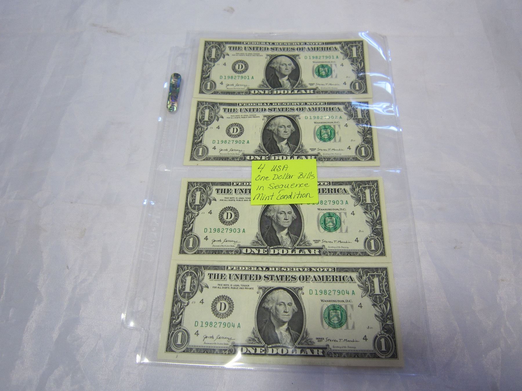 4 USA 1 DOLLAR BILLS IN SEQUENCE MINT CONDITION