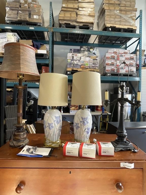 4 VINTAGE TABLE LAMPS WITH SHADES AND BULBS