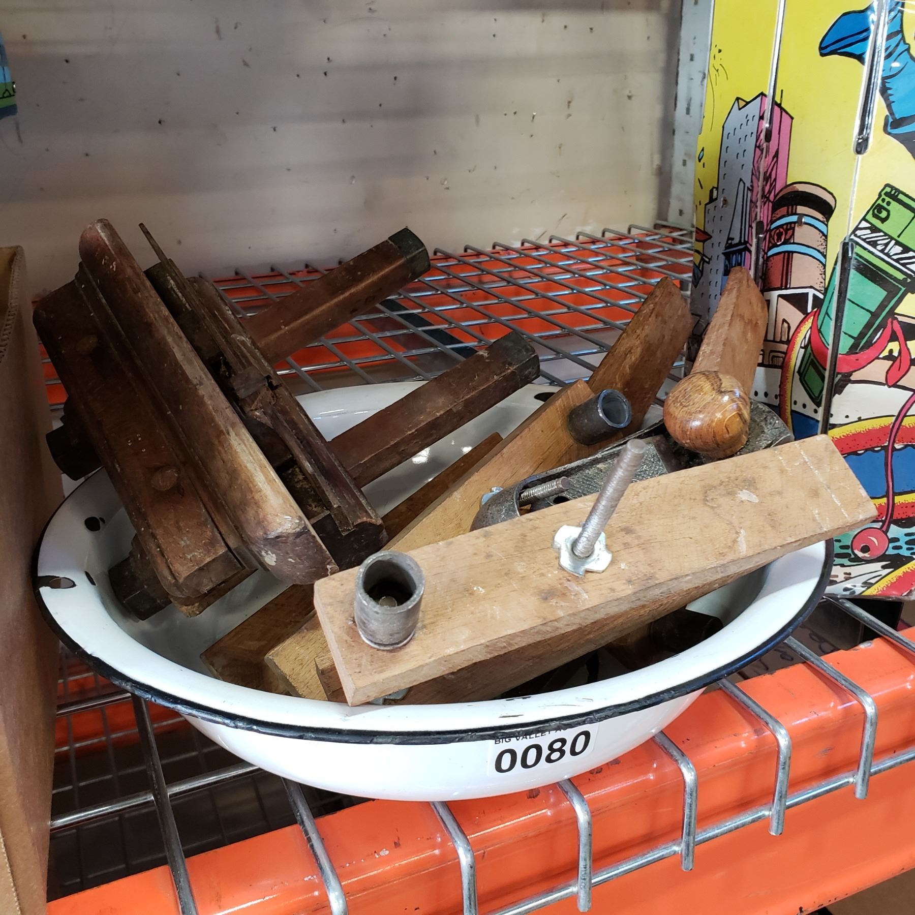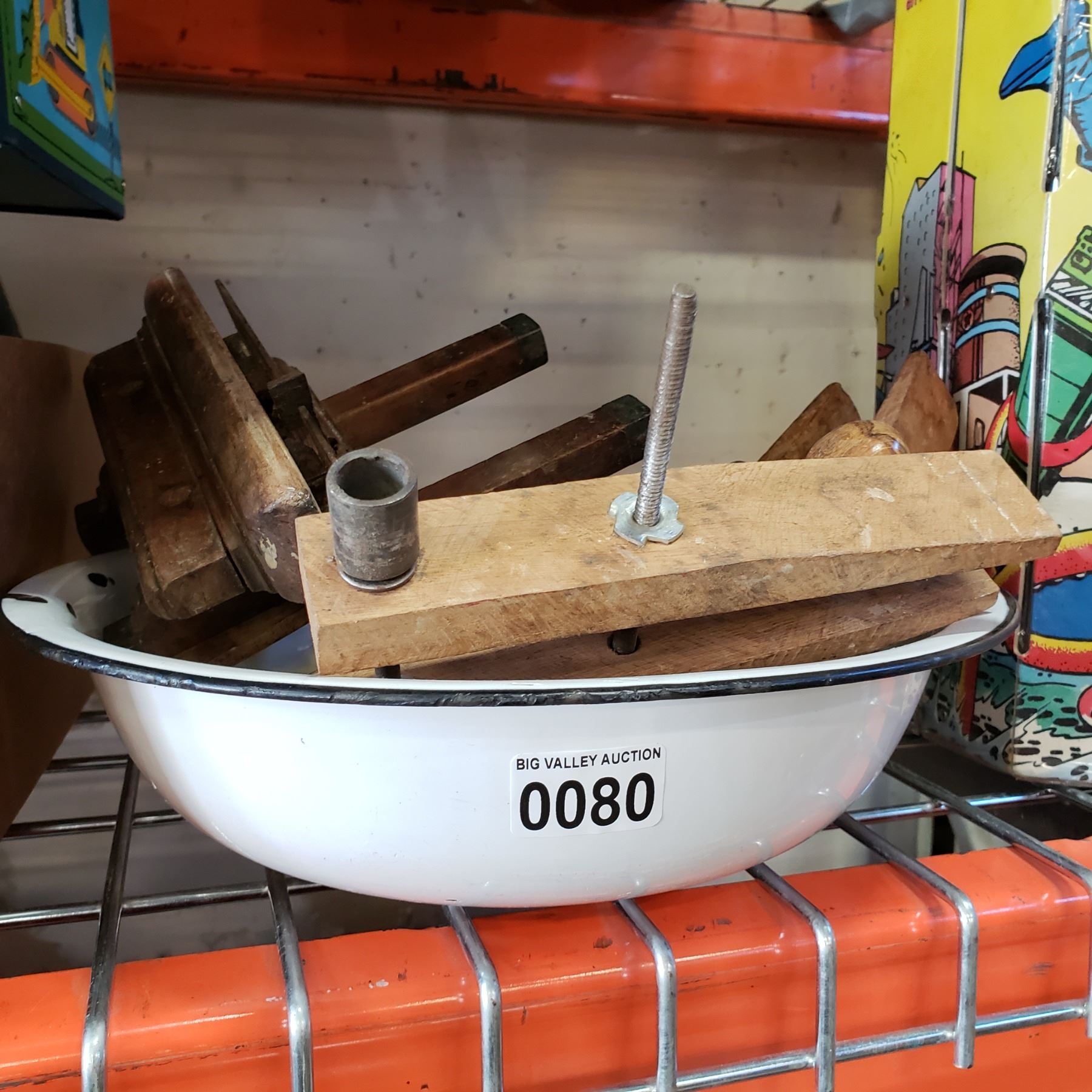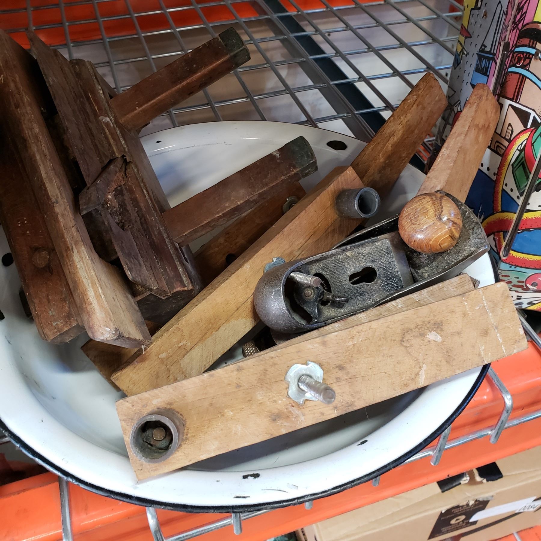 4 VINTAGE WOODEN CLAMPS, PLANER, SMALL HAND PLANER