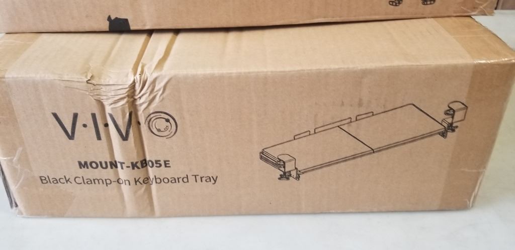 4 VIVO DUAL MONITOR DESK MOUNTS, AND VIVO KEYBOARD TRAY