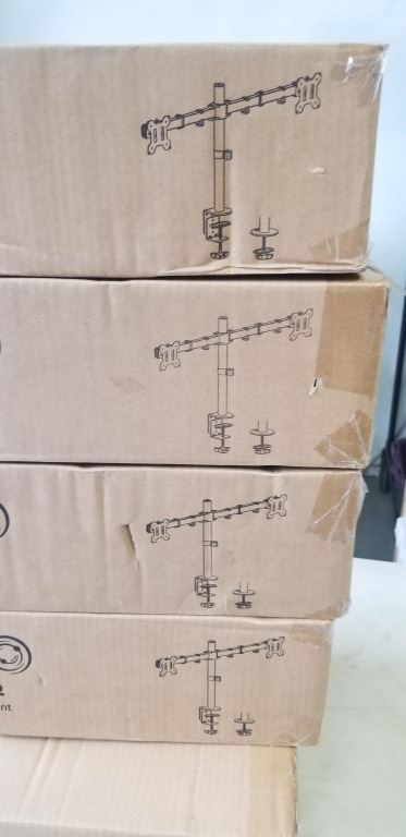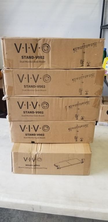 4 VIVO DUAL MONITOR DESK MOUNTS, AND VIVO KEYBOARD TRAY