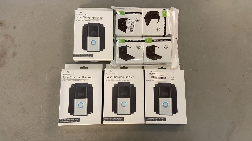 4 WASSERSTEIN SOLAR CHARGING BRACKET FOR RING DOORBELL AND PACK OF FOLDABLE DRINK HOLDERS