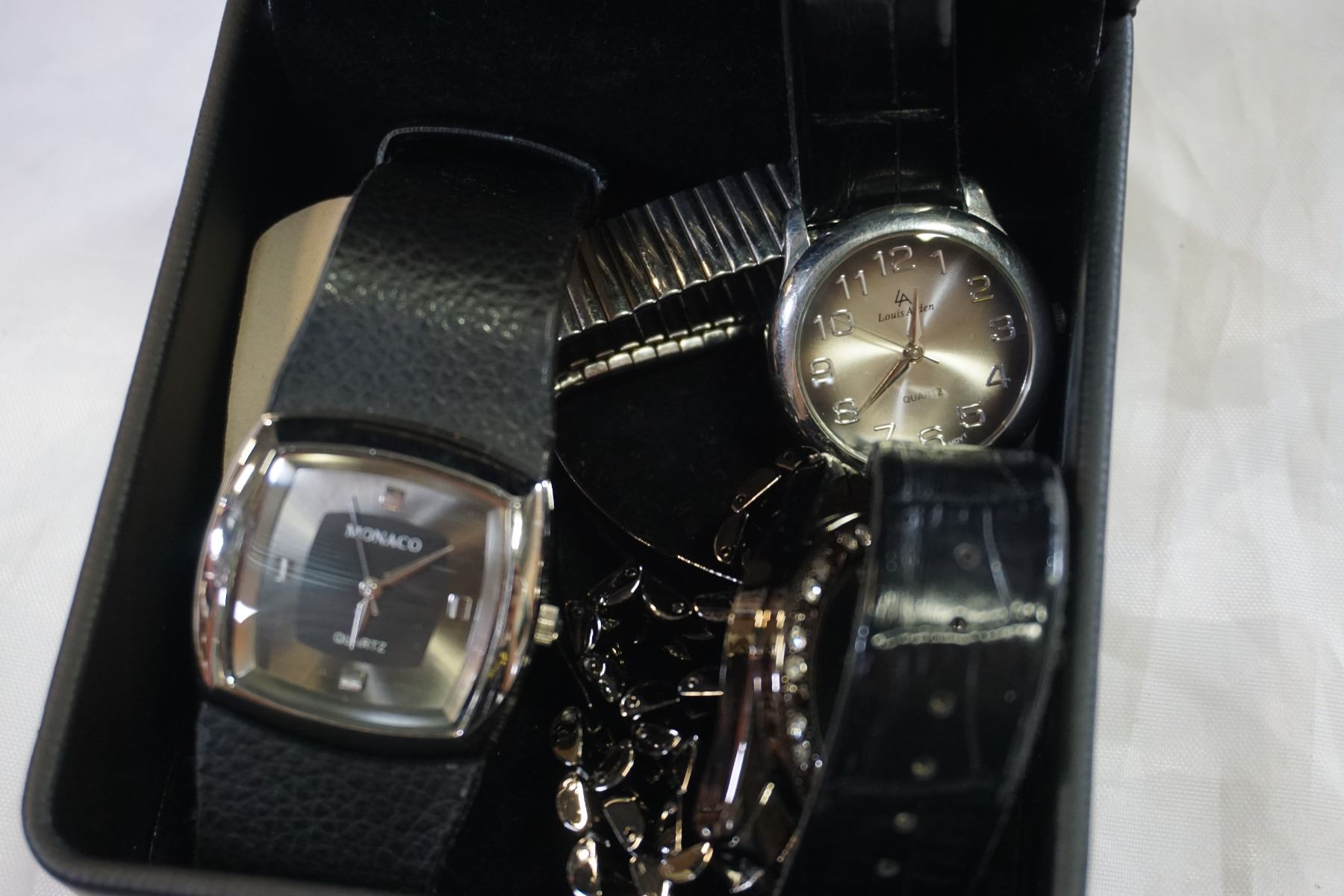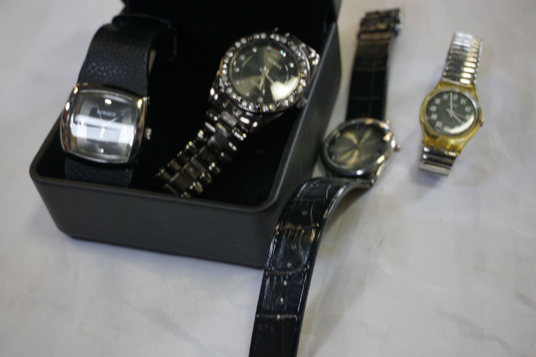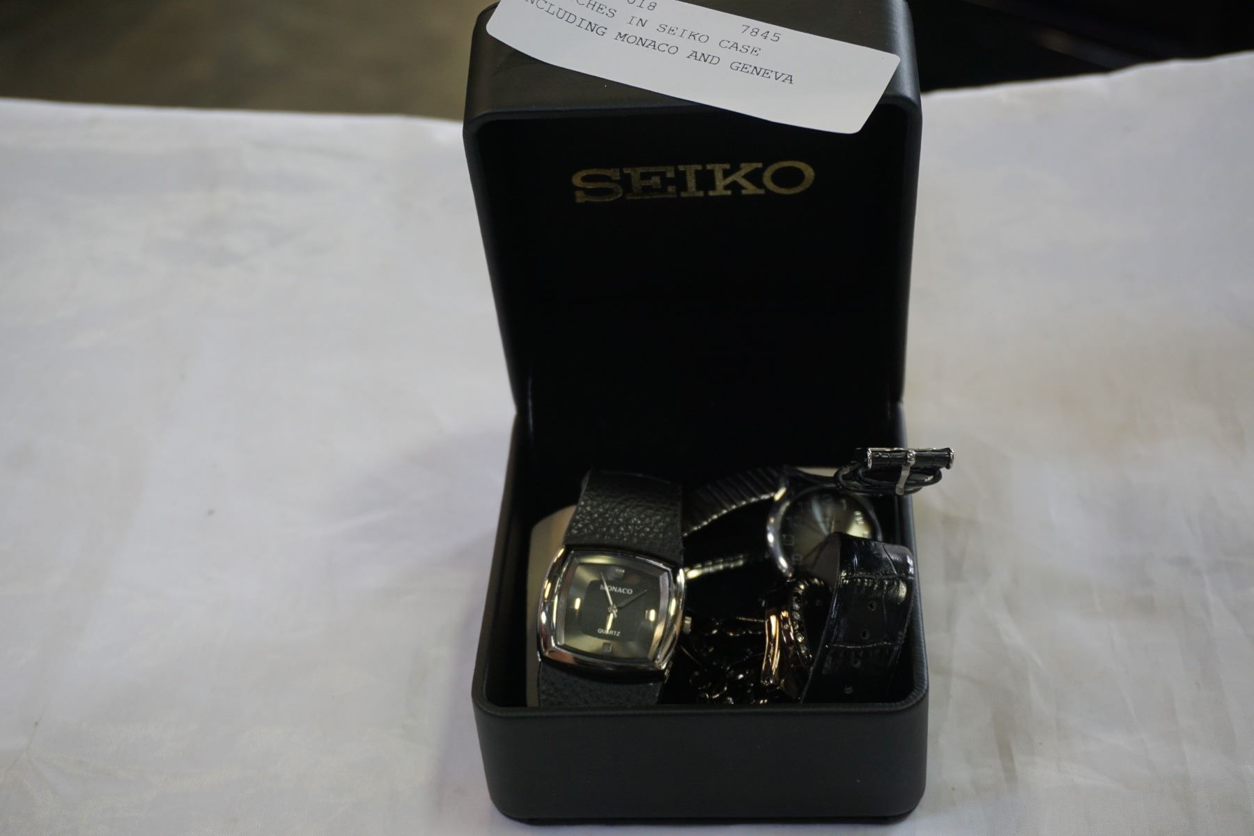 4 WATCHES IN SEIKO CASE INCLUDING MONACO AND GENEVA