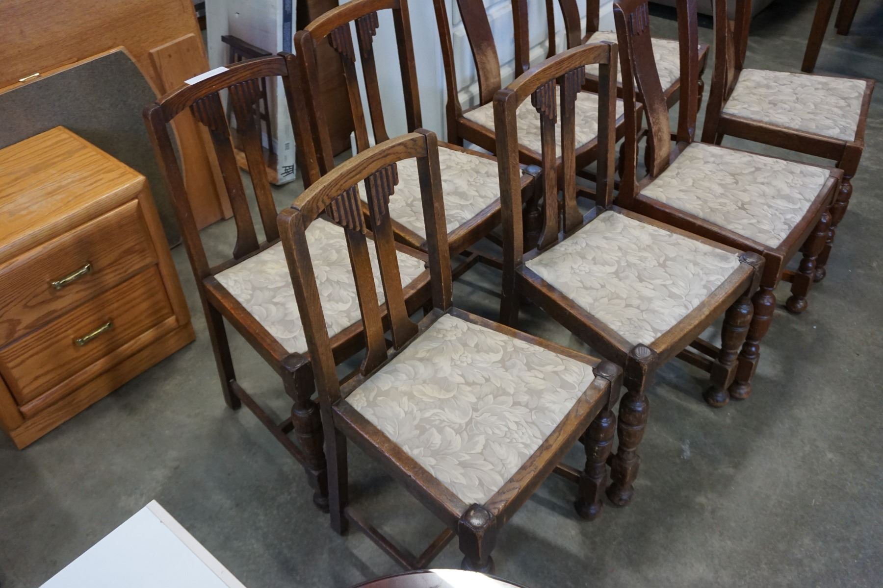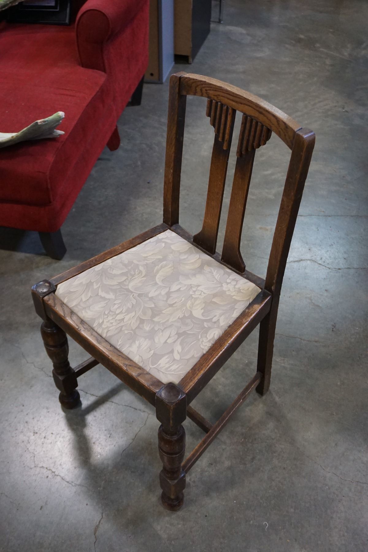 4 WOODEN DINING CHAIRS W/ TAPESTRY CUSHIONS