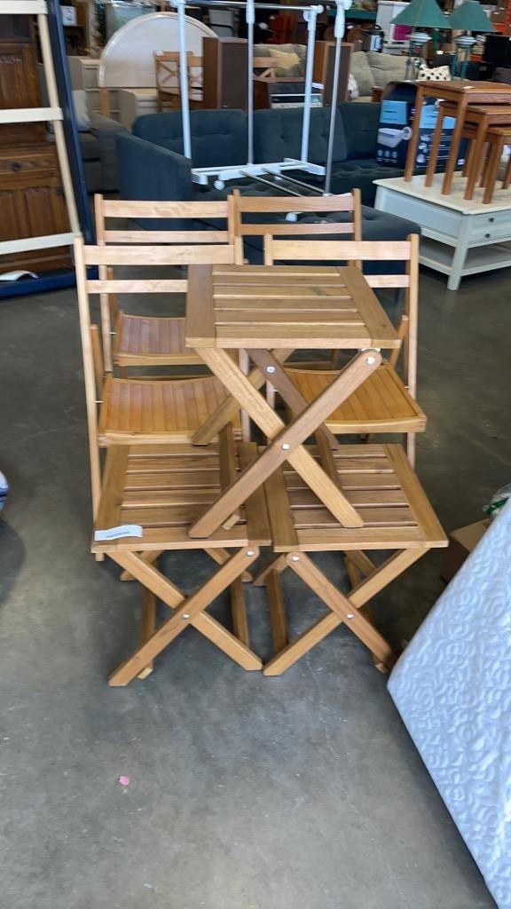 4 WOODEN FOLDING CHAIRS AND 3 FOLDING SIDE TABLES