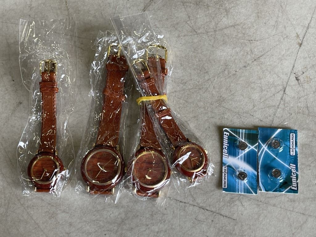4 WORKING WATCHES W/ LEATHER BANDS AND EXTRA BATTERIES