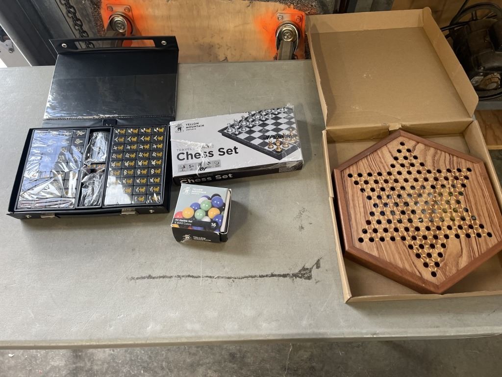 4 YELLOW MOUNTAIN GAMES INCL. TRAVEL CHESS, MAJONG AND MORE