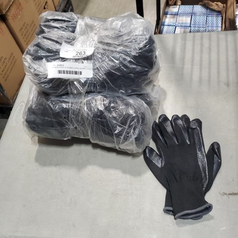 40 NEW PAIRS OF RUBBER DIPPED WORK GLOVES, 4 BUNDLES OF 10
