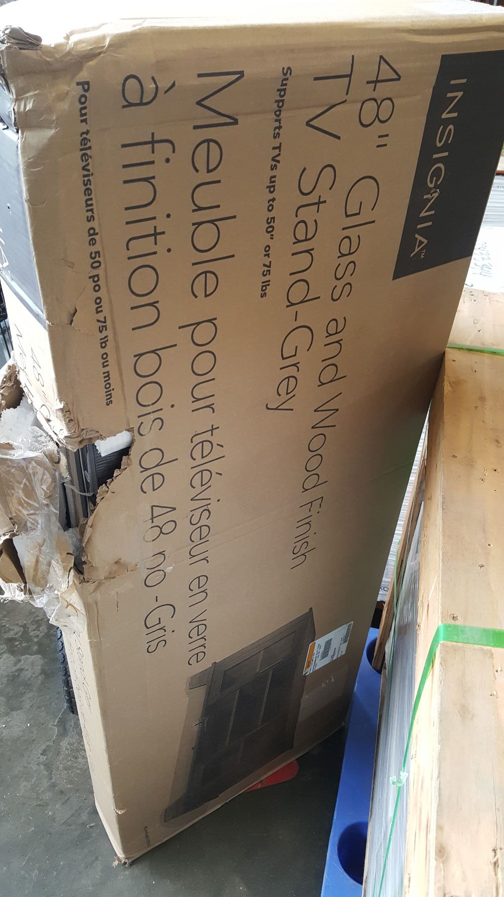 48 INCH GLASS AND WOOD FINISH TV STAND GREY