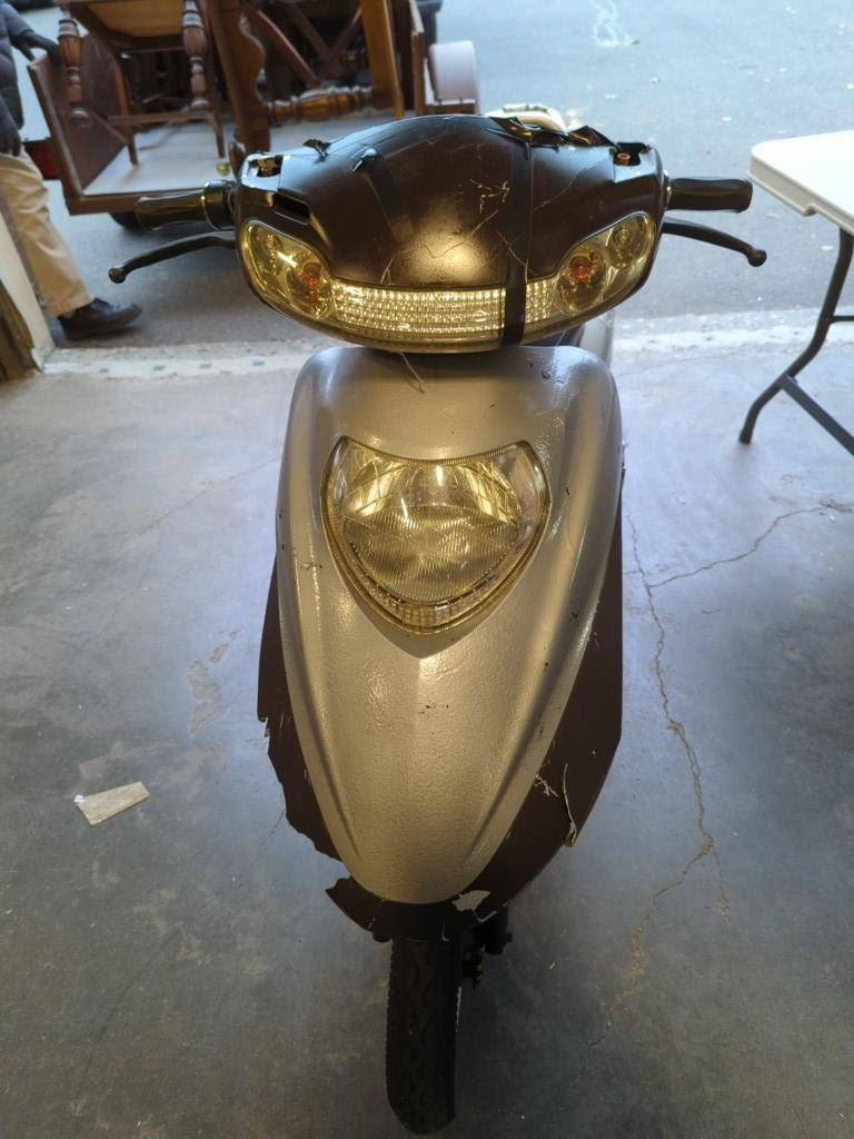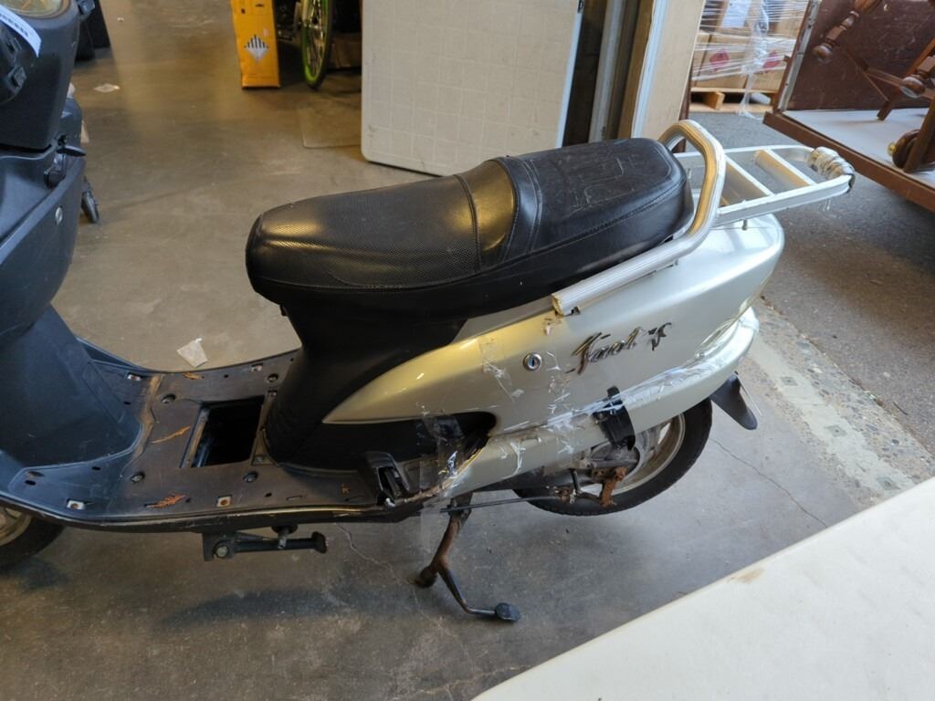 48V ELECTRIC SCOOTER HAS POWER AND CHARGER, SHELL HAS DAMAGE INCLUDES KEY AND 2 SIDE MIRRORS