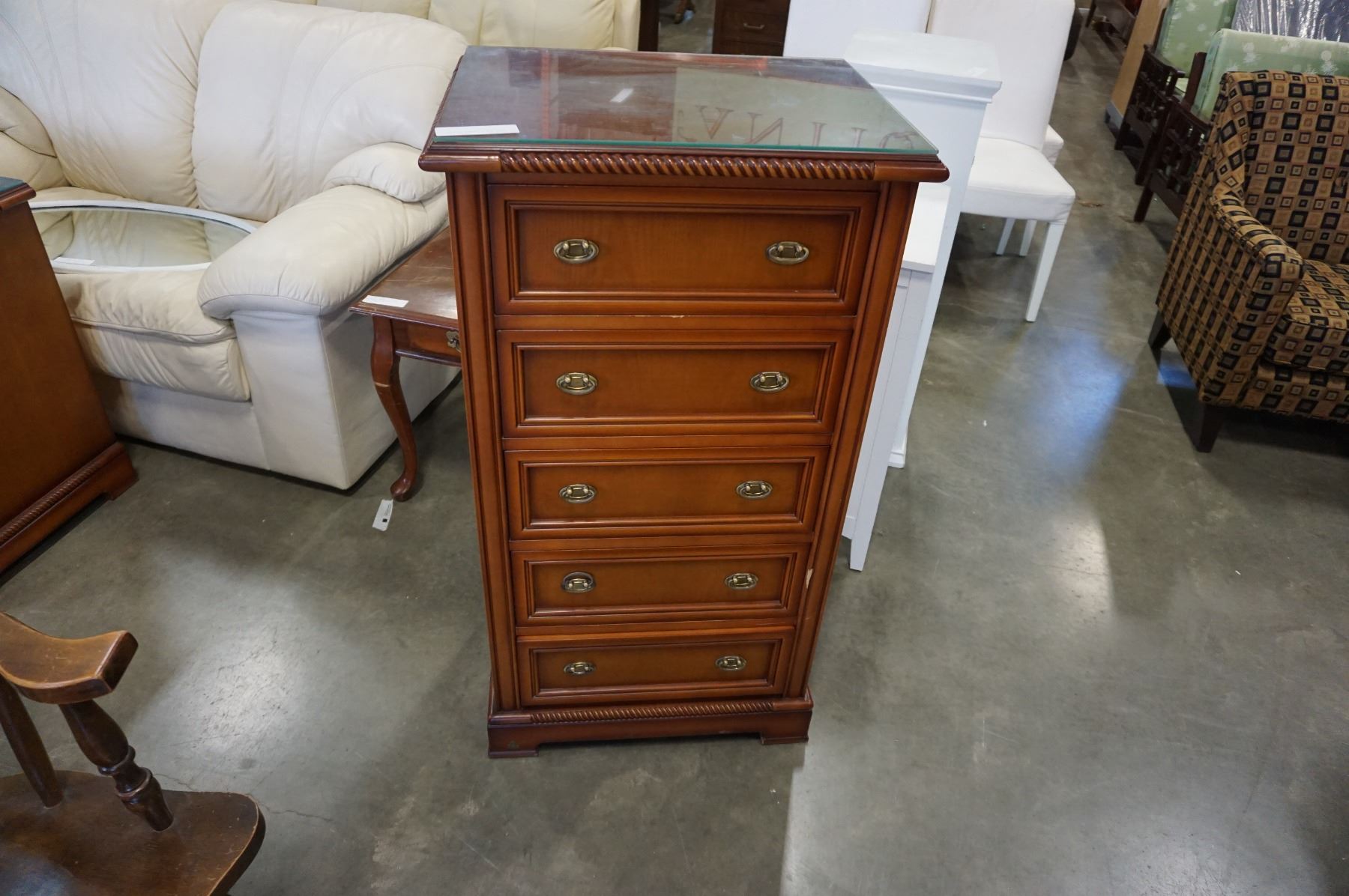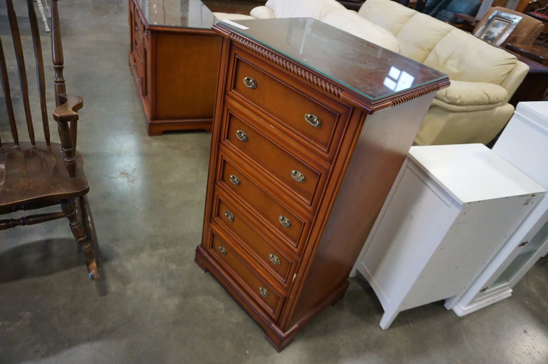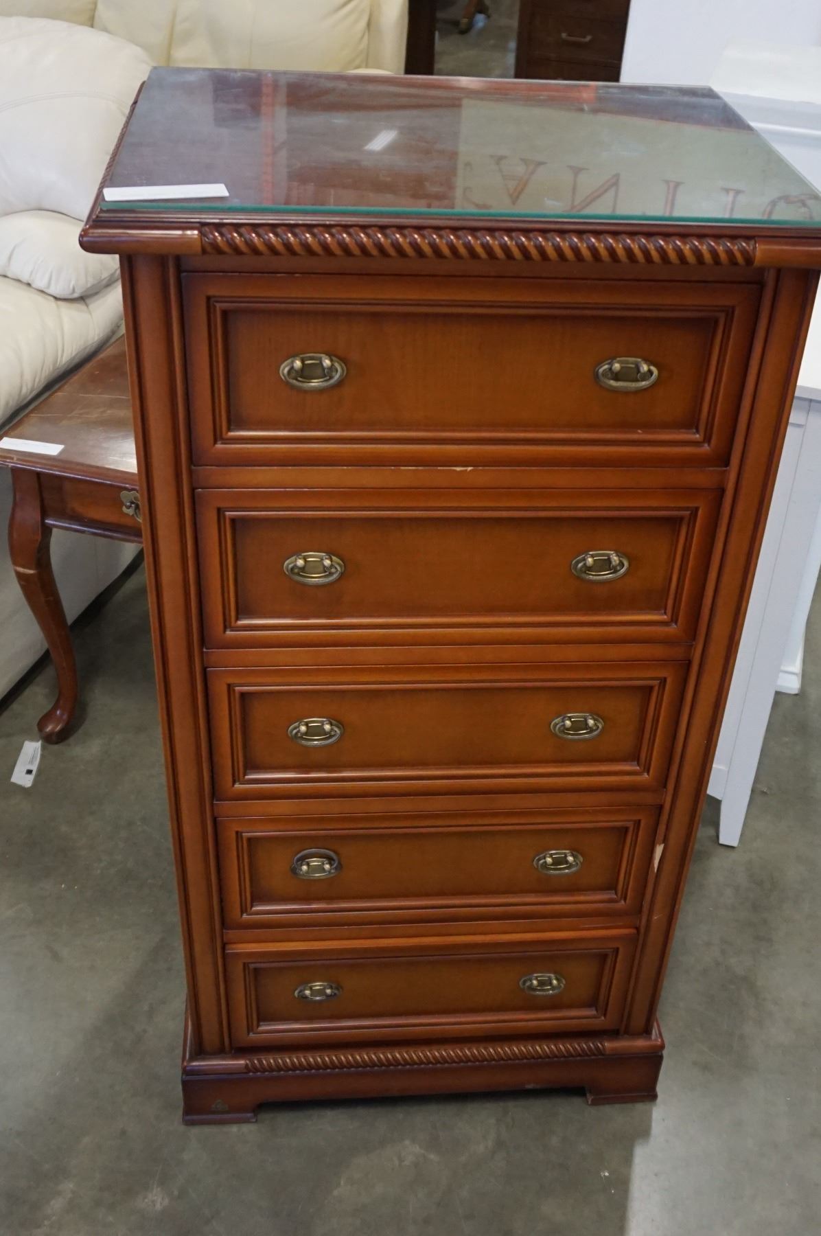 4FT GLASS TOP 5 DRAWER DRESSER