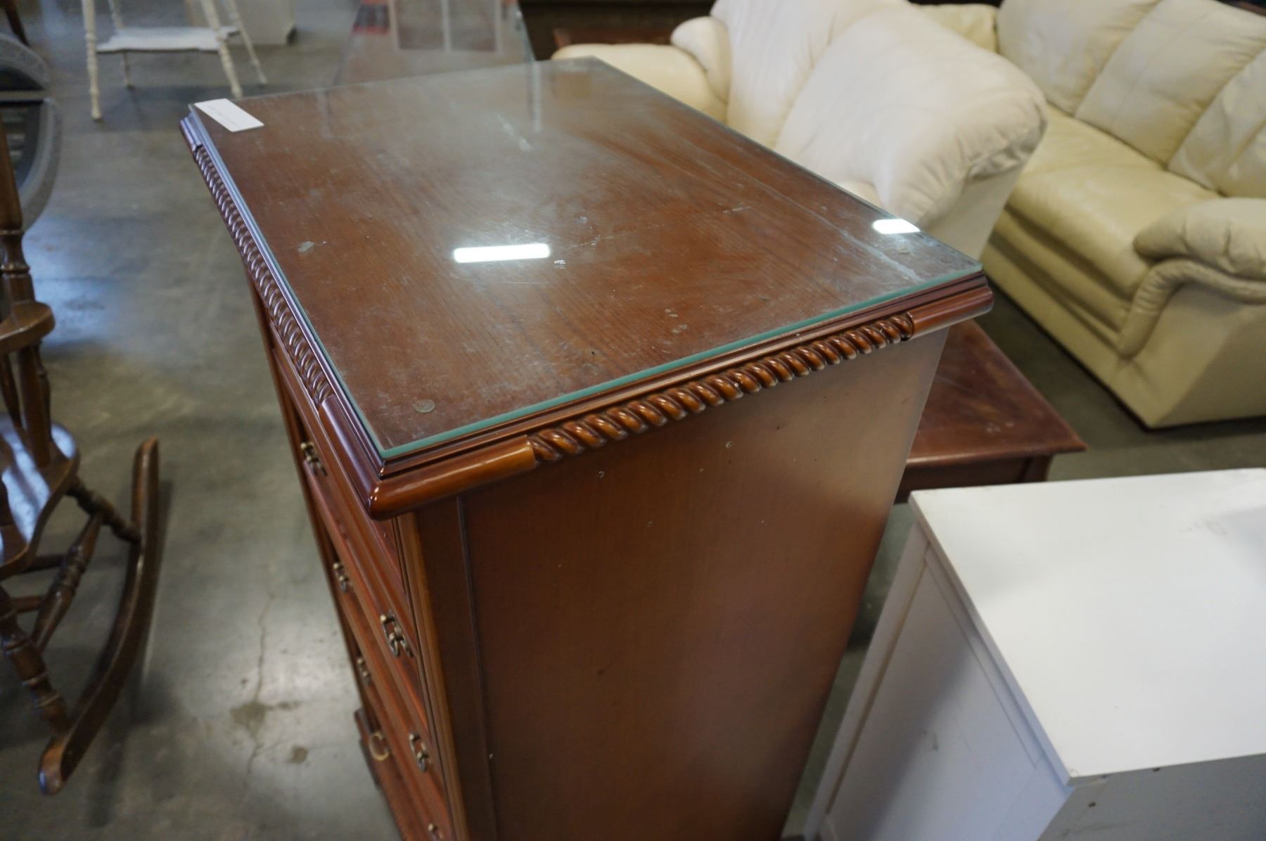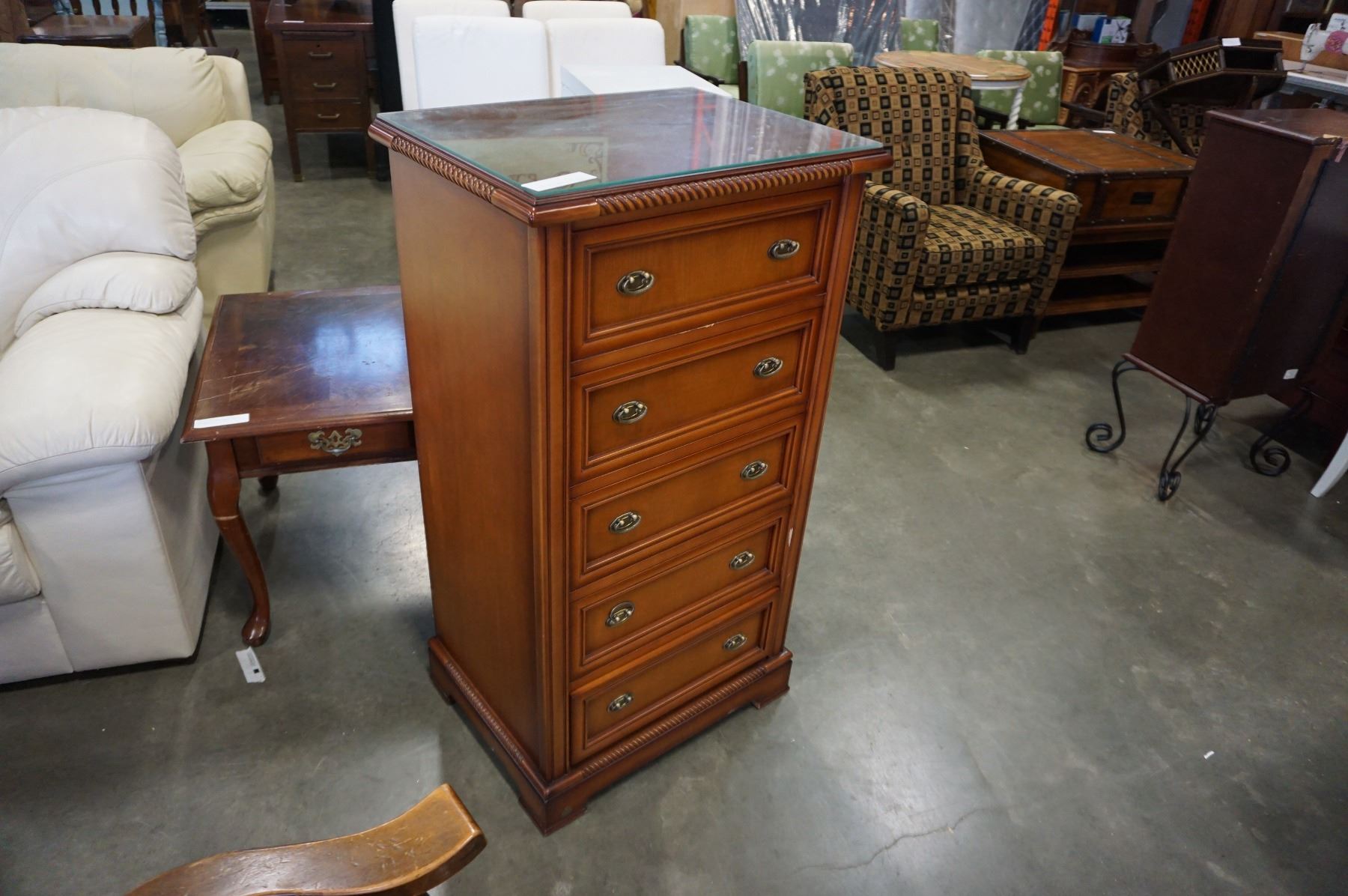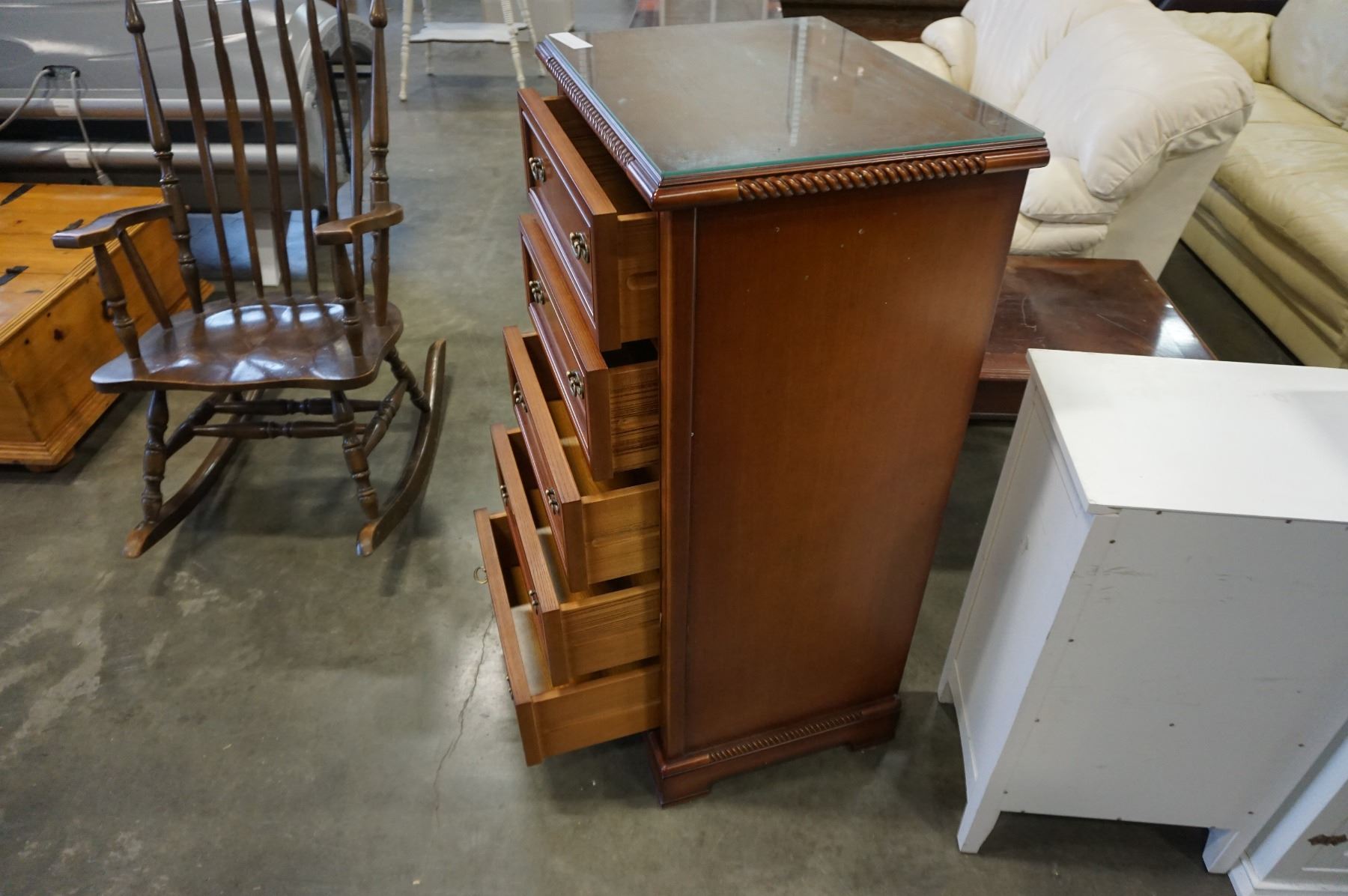 4FT GLASS TOP 5 DRAWER DRESSER