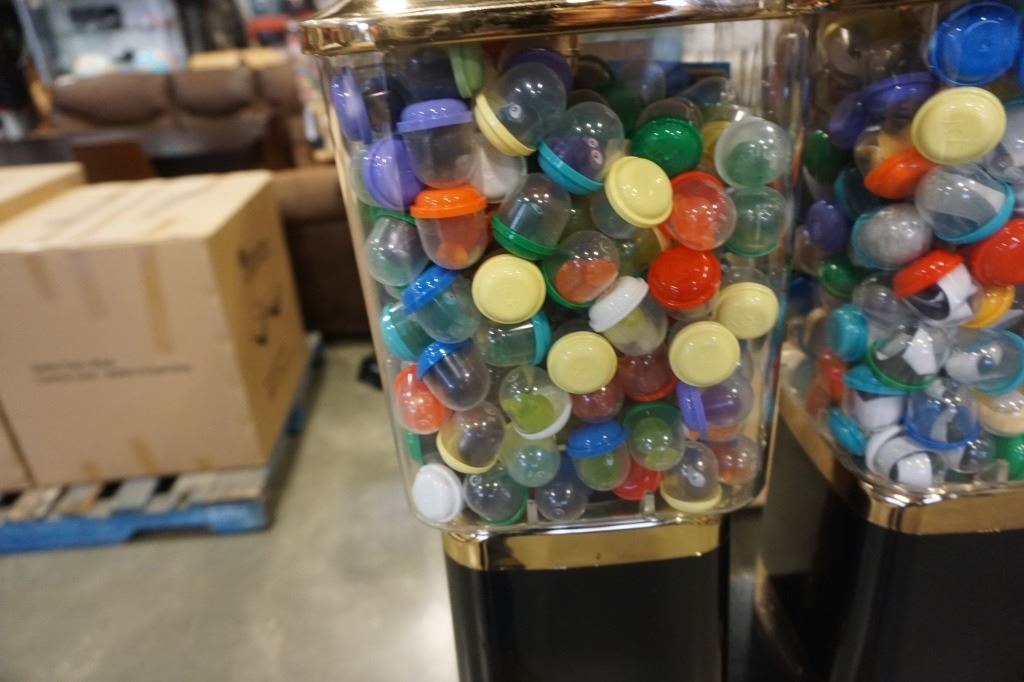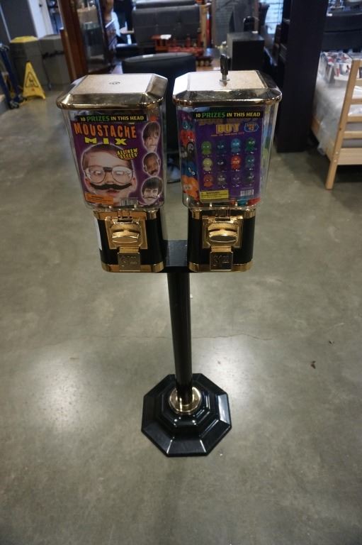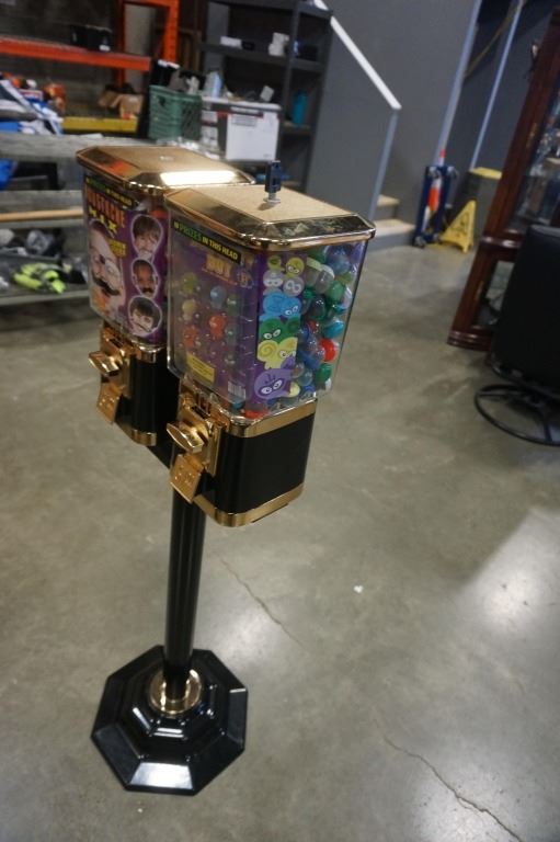 4ft tall Vendit international double head loonie toy despensing machines with key approx 500 toys