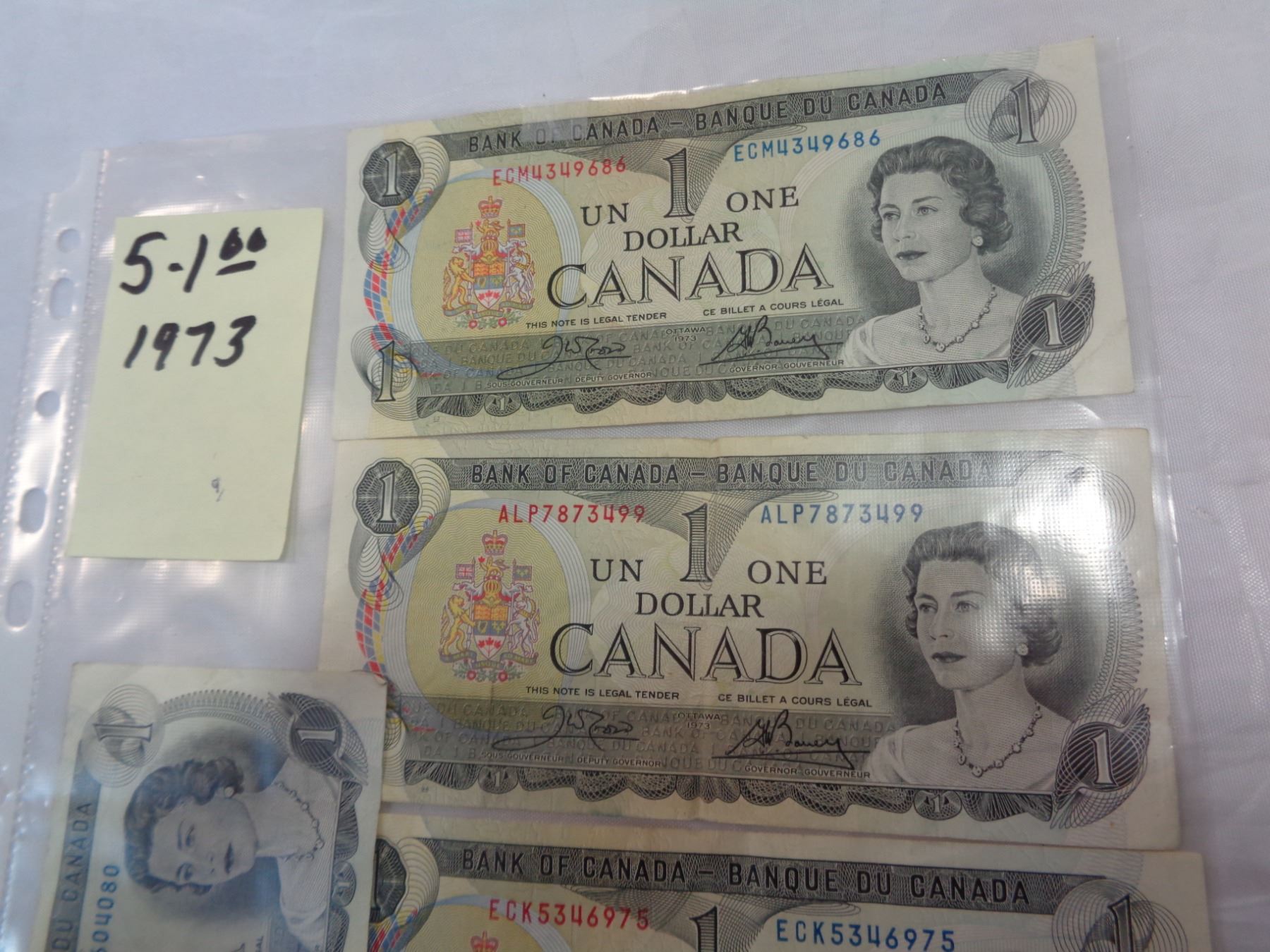 5 1 DOLLAR BILLS 1973