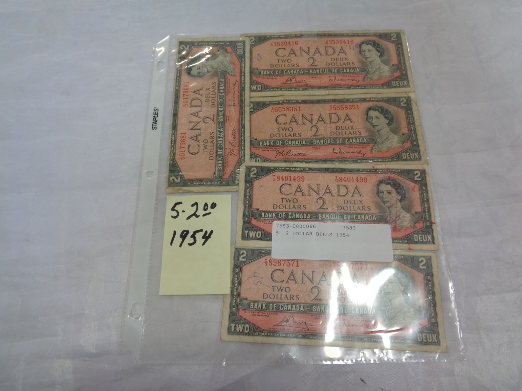 5, 2 DOLLAR BILLS 1954