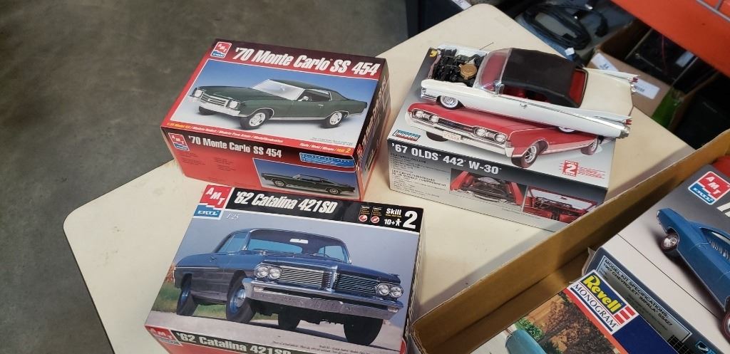 5 60'S MODEL CAR KITS AND 2 BUILT CADILLAC MODELS