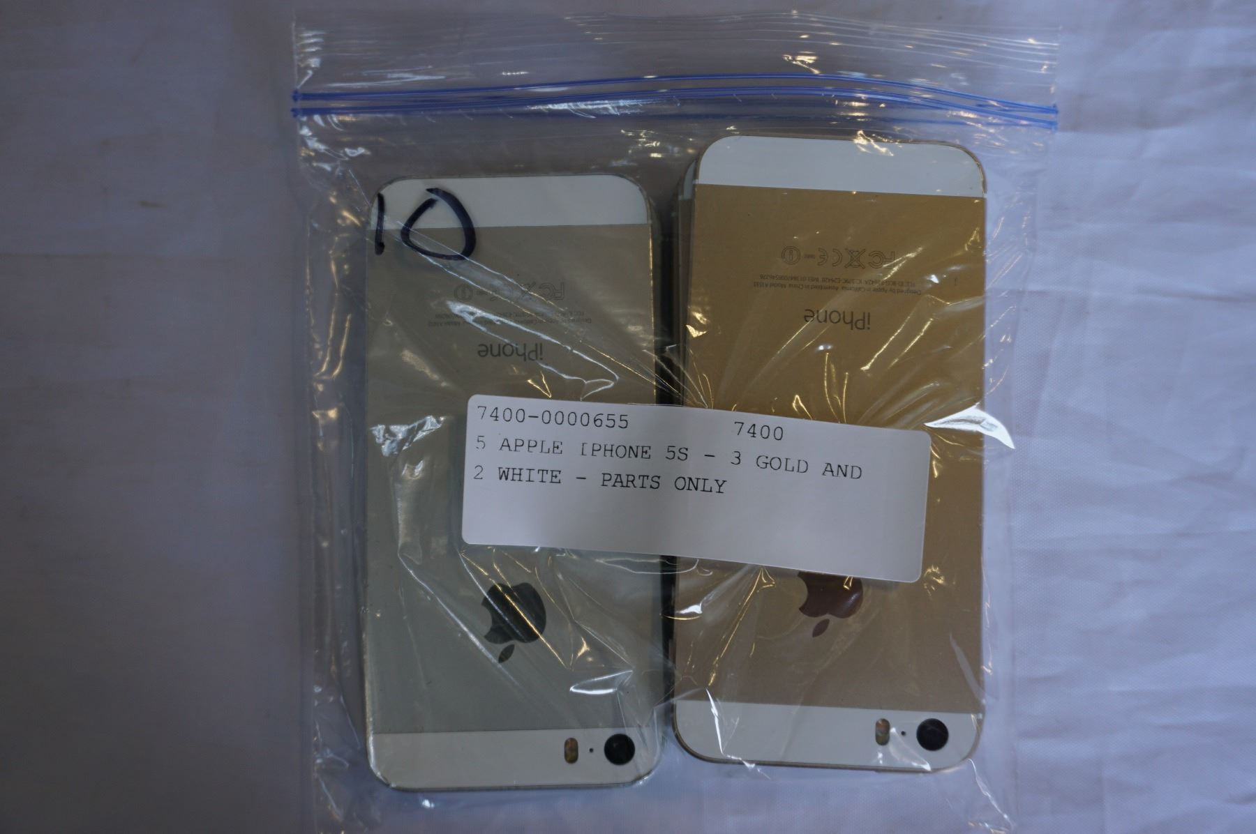 5 APPLE IPHONE 5S - 3 GOLD AND 2 WHITE - PARTS ONLY