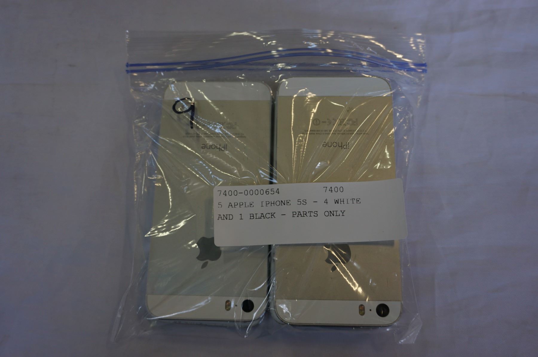 5 APPLE IPHONE 5S - 4 WHITE AND 1 BLACK - PARTS ONLY