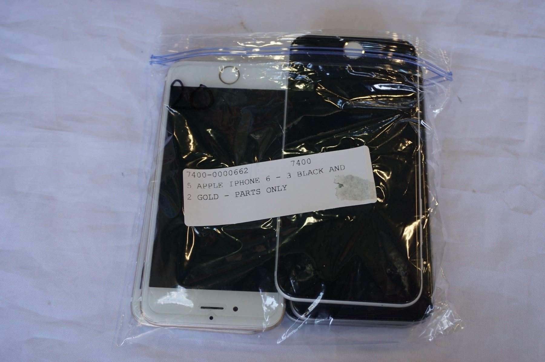 5 APPLE IPHONE 6 - 3 BLACK AND 2 GOLD - PARTS ONLY