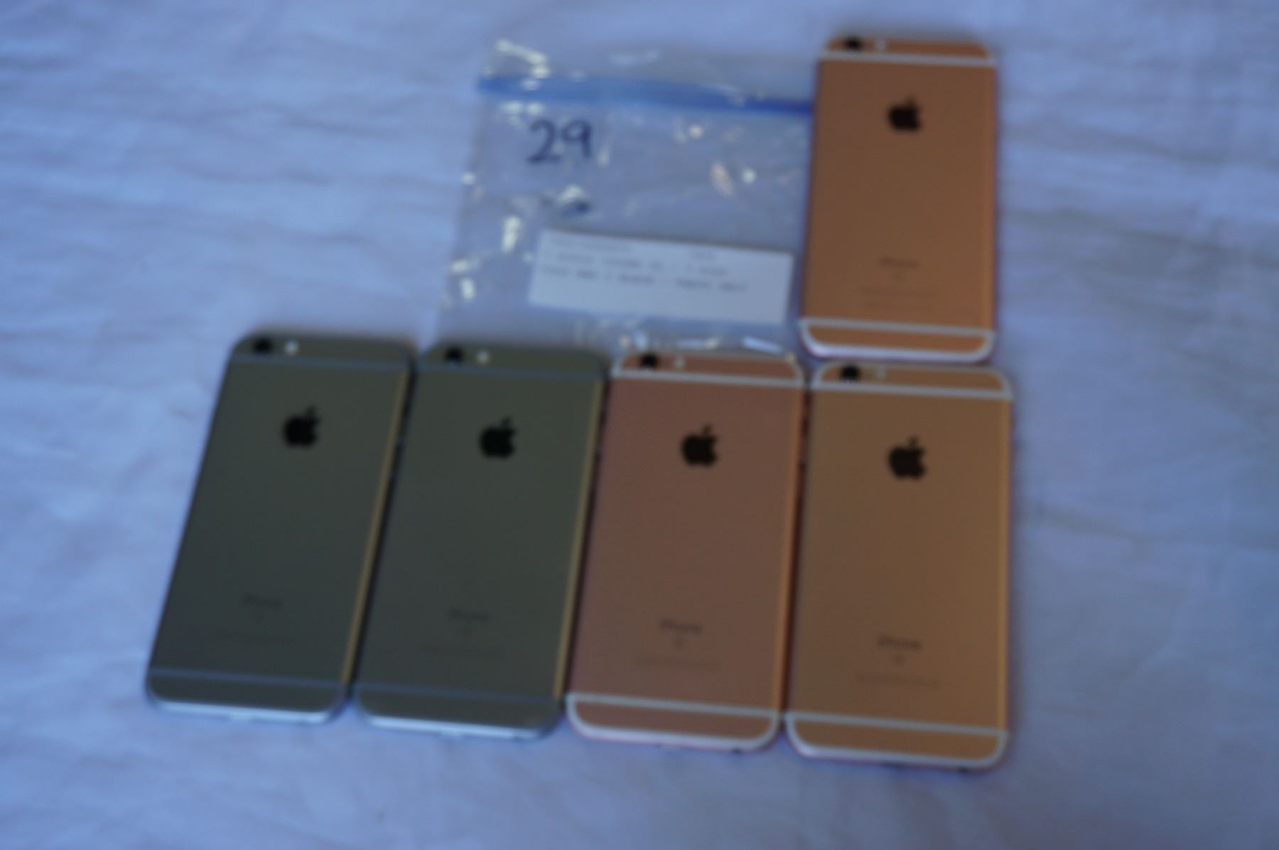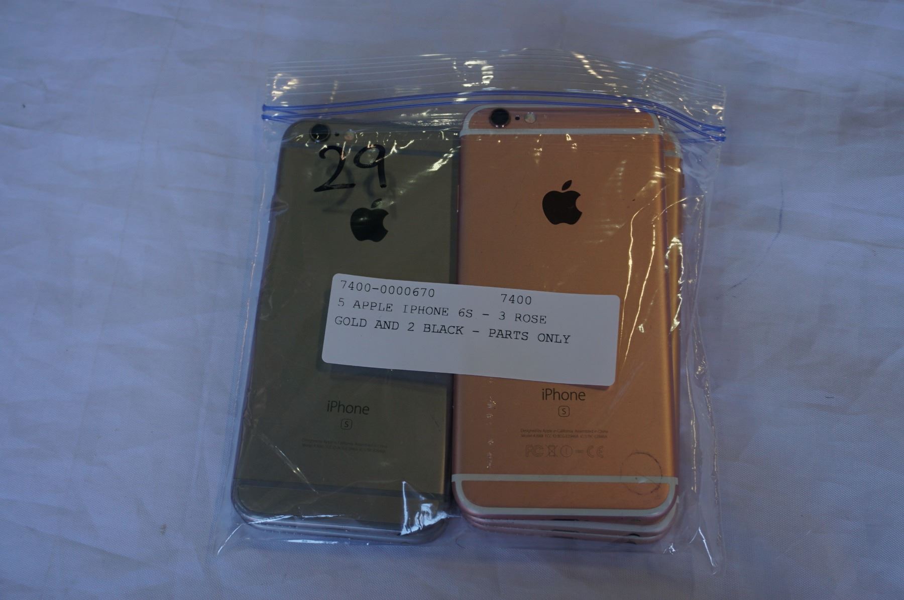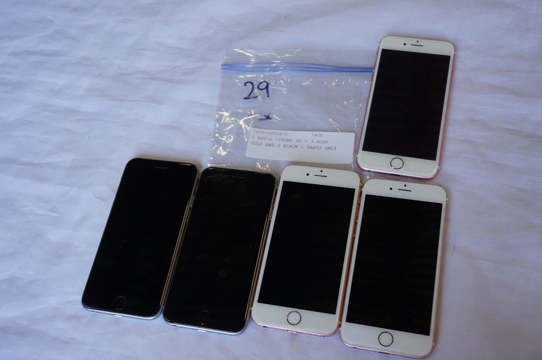 5 APPLE IPHONE 6S - 3 ROSE GOLD AND 2 BLACK - PARTS ONLY