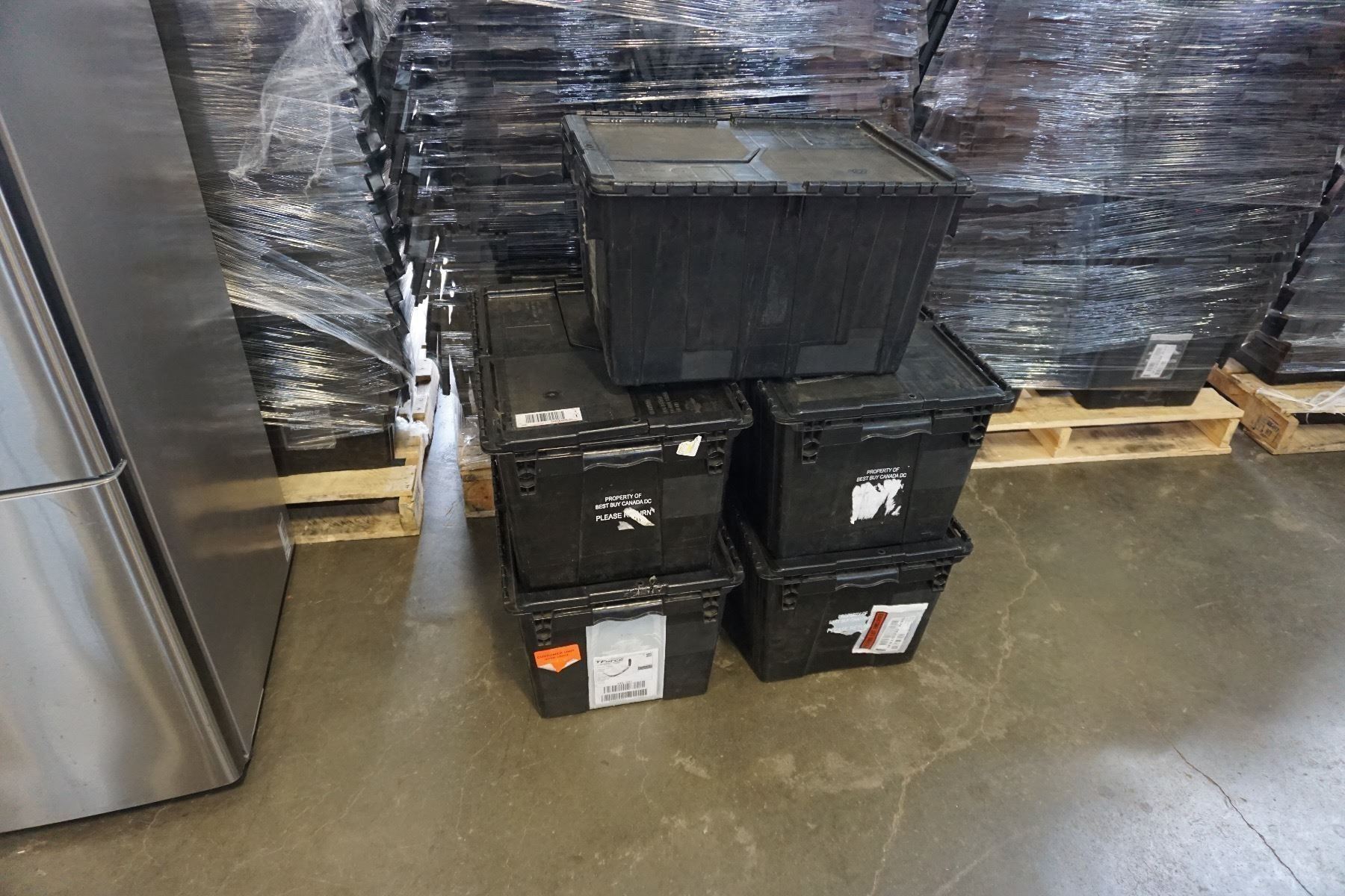 5 BLACK INTERLOCKING LID STACKING STORAGE TOTES