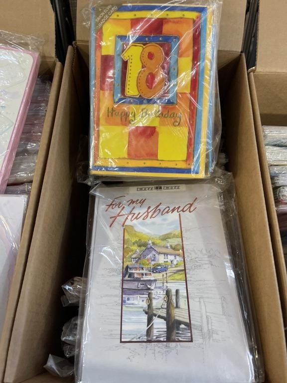 5 BOXES OF ASSORTED VINTAGE GREETING CARDS, PACKS OF 12 APPROX 800 TOTAL
