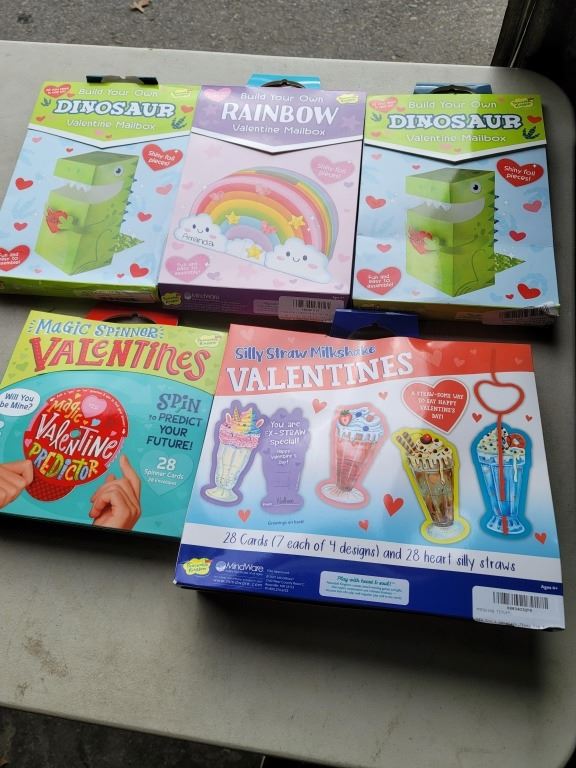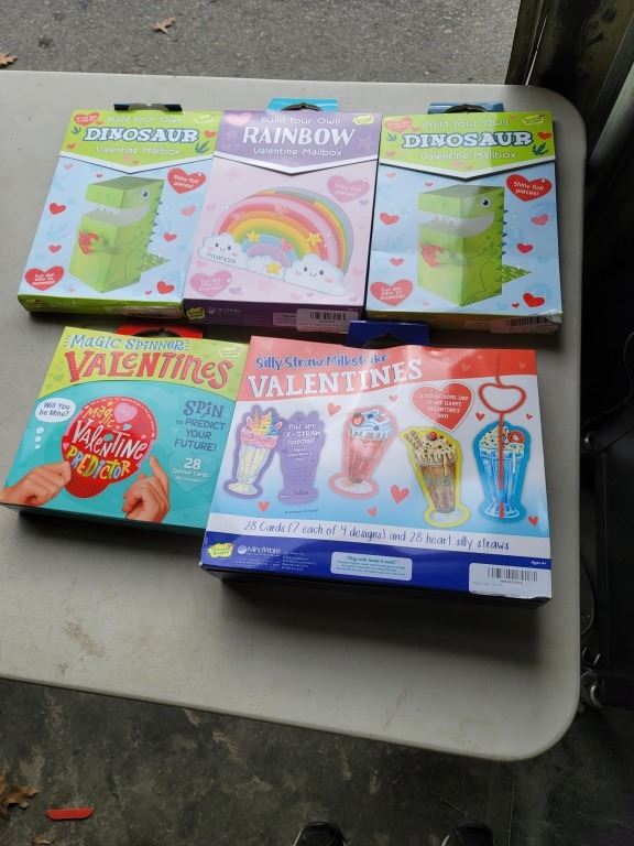 5 BOXES OF NEW VALENTINE CARDS AND VALENTINE MAILBOXES
