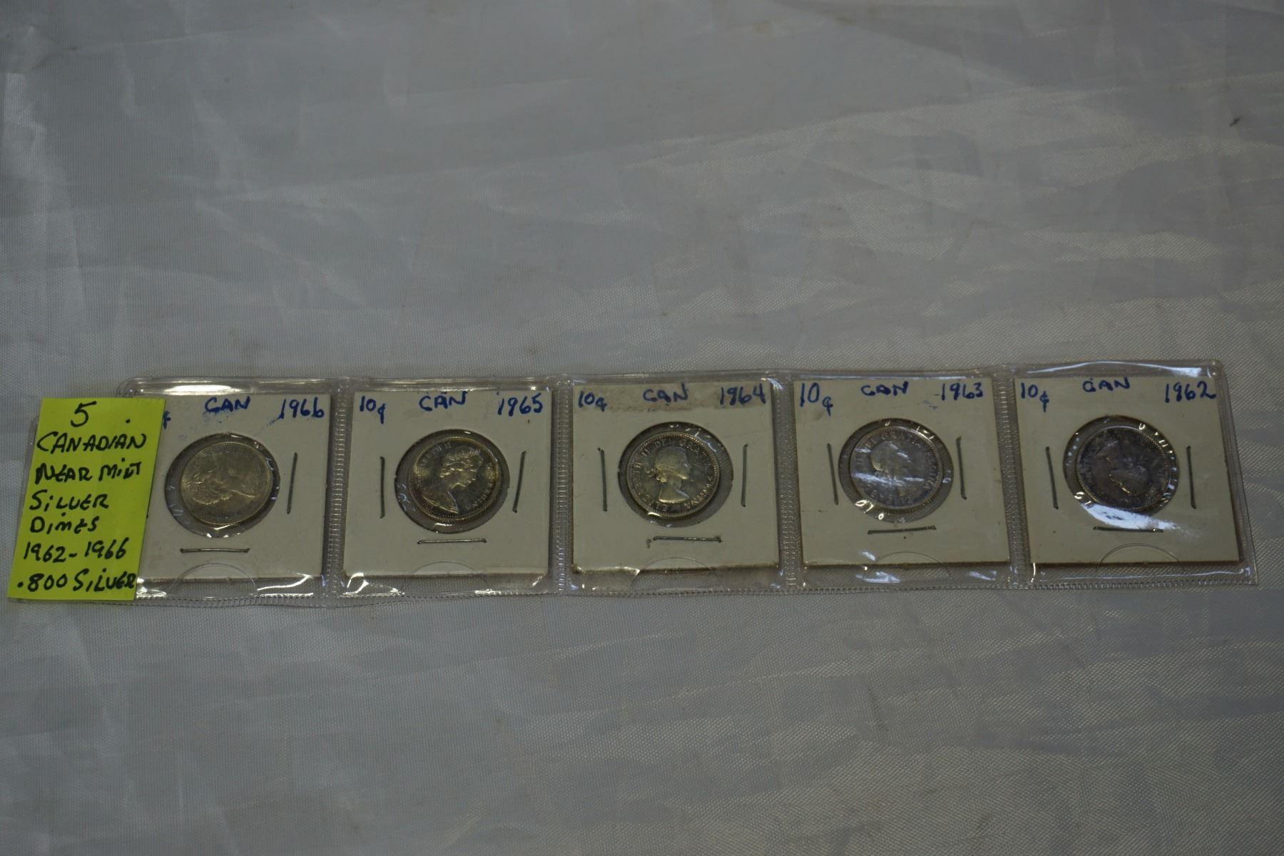 5 CANADIAN SILVER DIMES NEAR MINT .800 SILVER 1962-1966