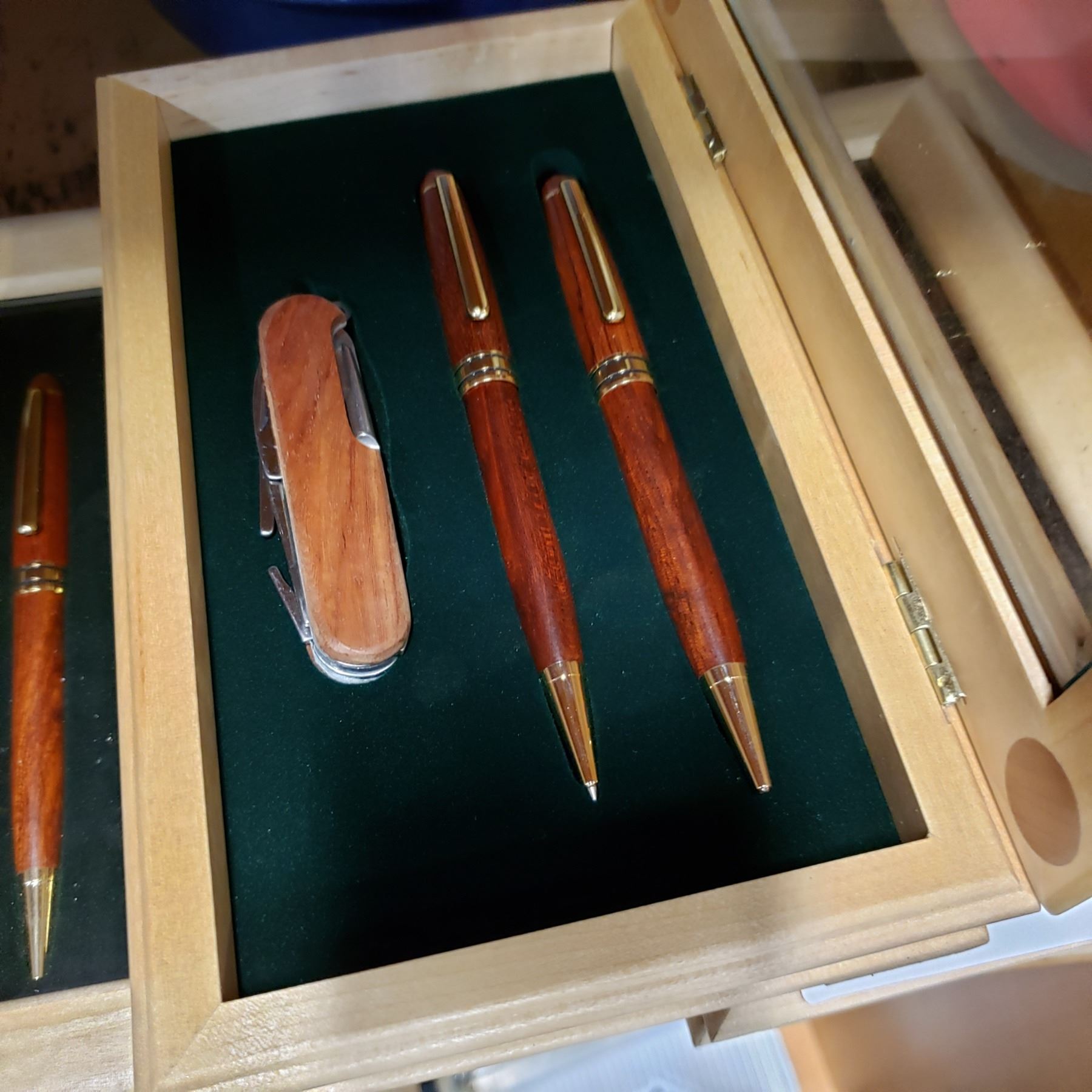 5 CASED 3PC PEN SETS AND POCKET KNIFE SETS