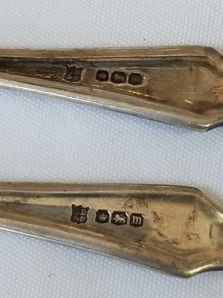 5 CB&S SPOONS WITH STERLING SILVER HALLMARKS