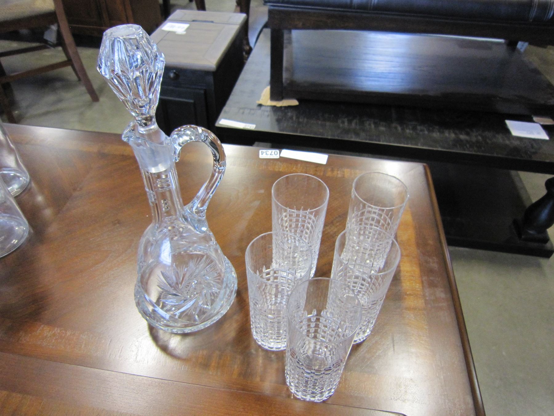 5 CRYSTAL GLASSES & PINWHEEL DECANTER
