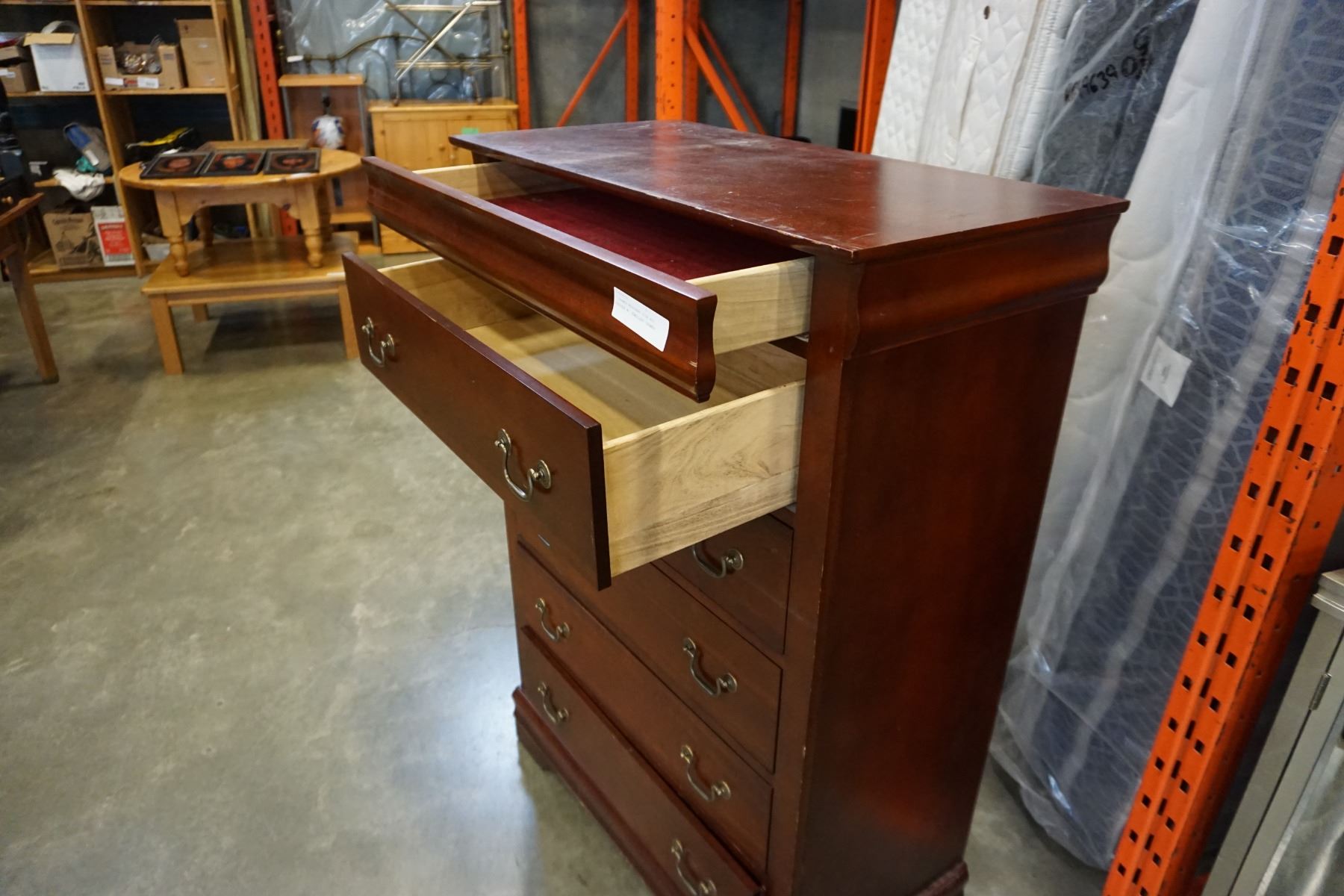 5 DRAWER MAHOGANY HIGH BOY DRESSER W/ JEWELLERY DRAWER