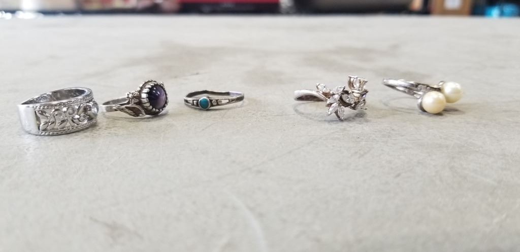 5 ESTATE RINGS - ALL MARKED STERLING SILVER
