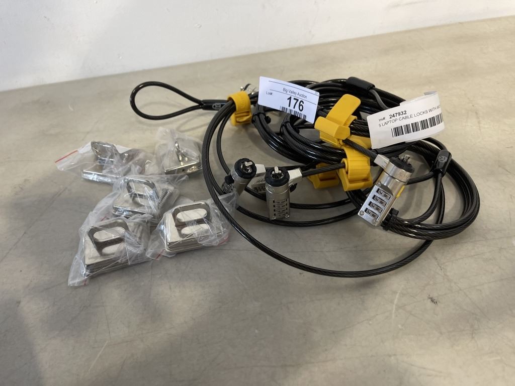 5 LAPTOP CABLE LOCKS WITH ANCHORS