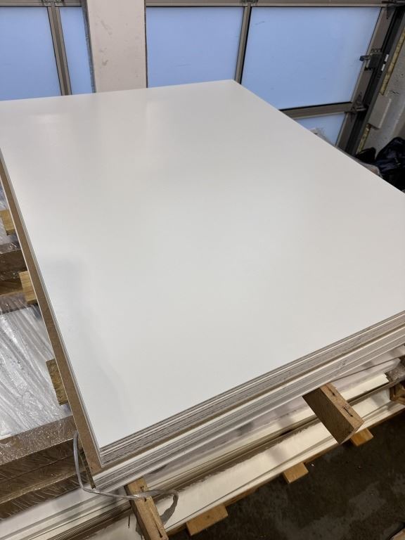 5 NEW 36 X 47 INCH WHITE MDF BOARDS, 1/4 INCH THICK