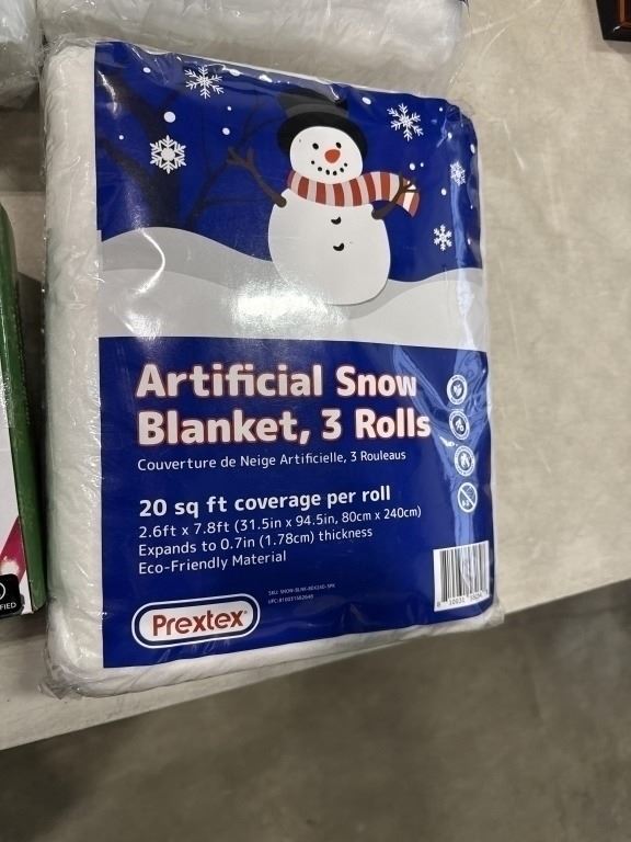 5 NEW ARTIFICIAL SNOW BLANKET, 3 ROLLS 2.6FTX 7.8FT EACH EXPANDS TO 1.78 THICK, AND NEW SET OF PREXT